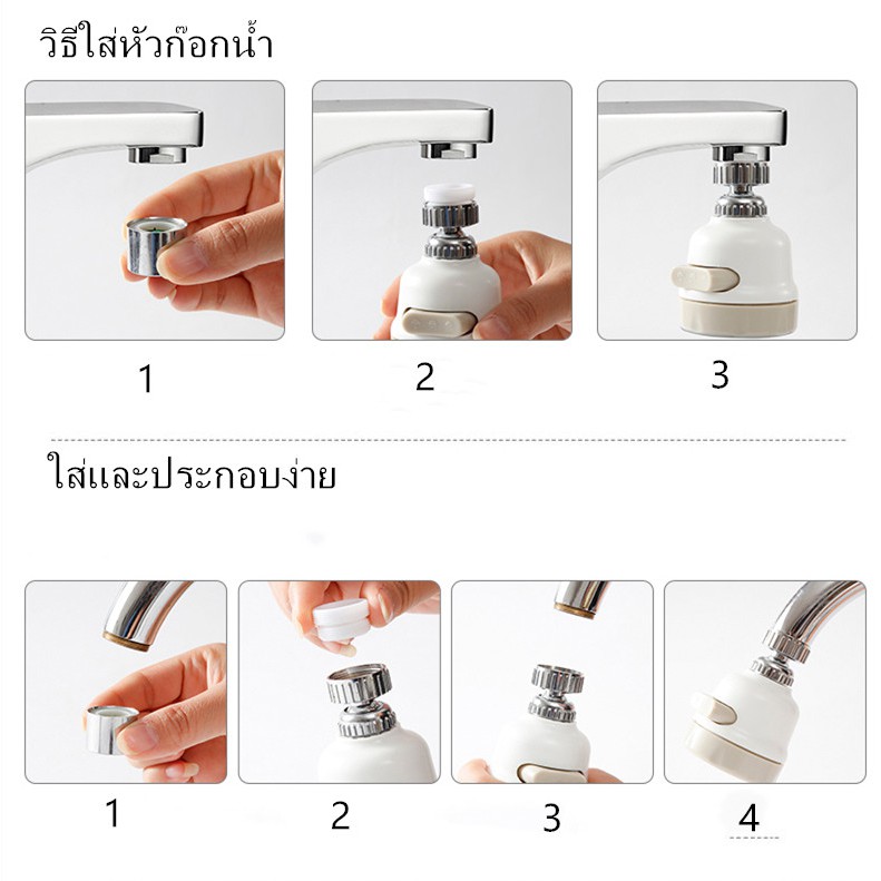 หัวก๊อกน้ําสแตนเลสหมุนได้ 360 องศาประหยัดน้ําหัวฉีดก๊อกน้ํา