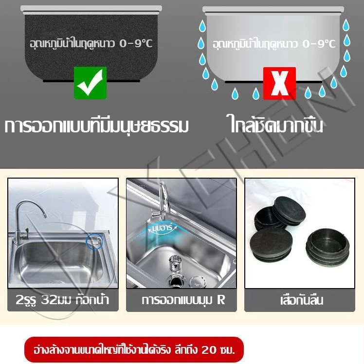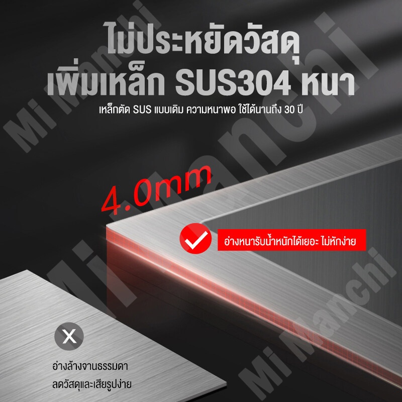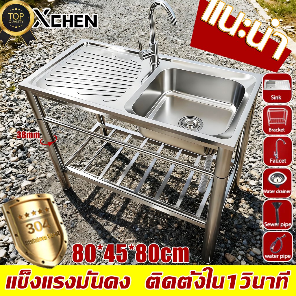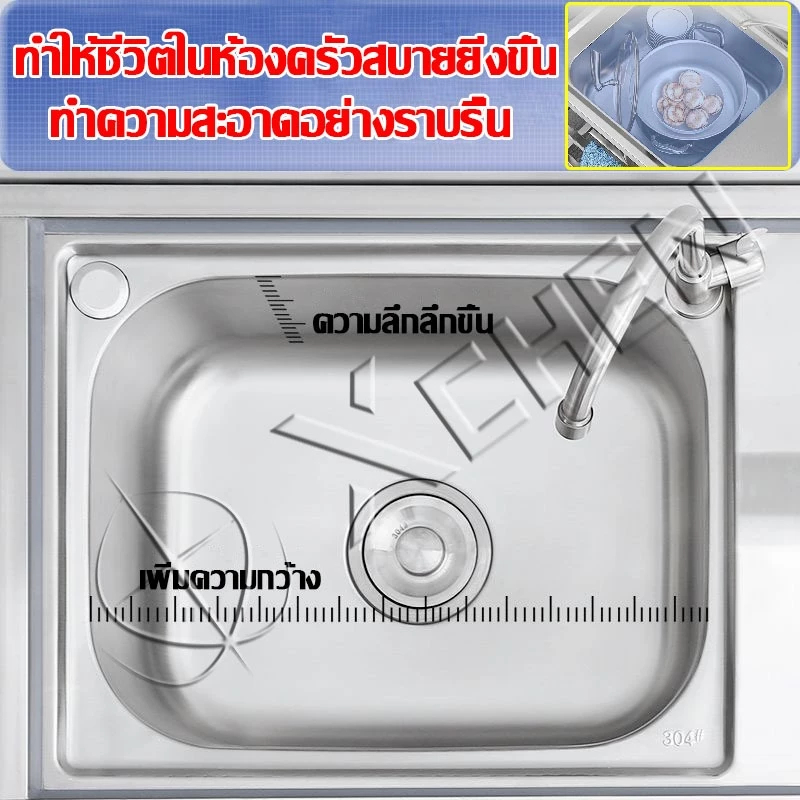 หนาขึ้นไม่ขึ้นราคา💖ซิ้งล้างจาน1ลุม อ่างล้างจาน SUS304 ไม่ขึ้นสนิม 100% หนาขึ้นและเสริมแรง เพิ่มการรับน้ำหนัก ไม่เขย่า 80*45*80