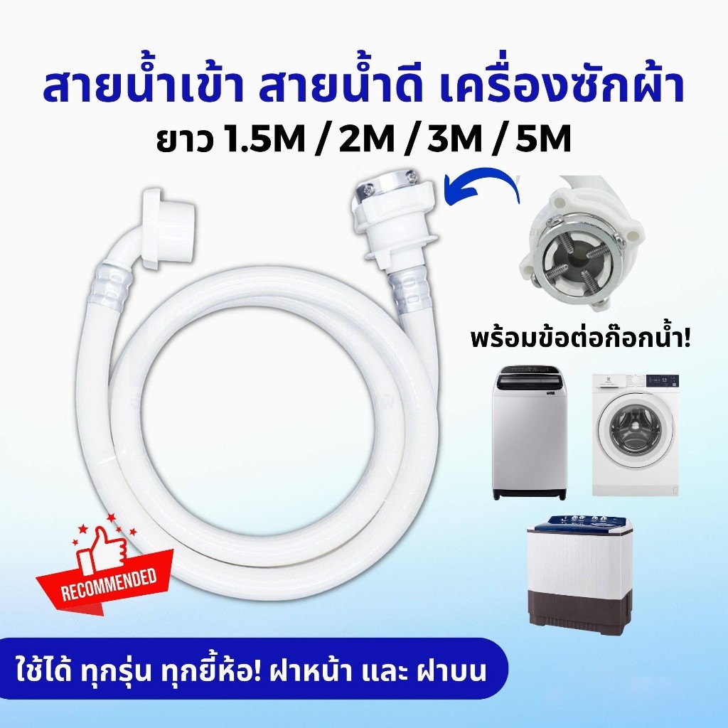 สายน้ำเข้า สายน้ำดี หัวต่อก๊อก เครื่องซักผ้า ยาว 5M/3M/2M/1.5M พร้อม ข้อต่อก๊อกน้ำ ใช้ได้ทุกรุ่น ทุกยี้ห้อ ฝาหน้า ฝาบน