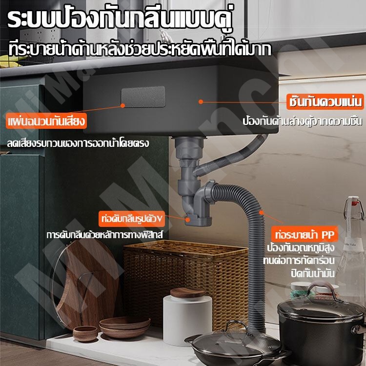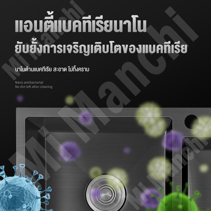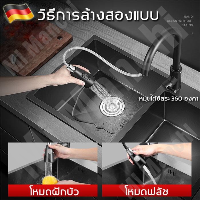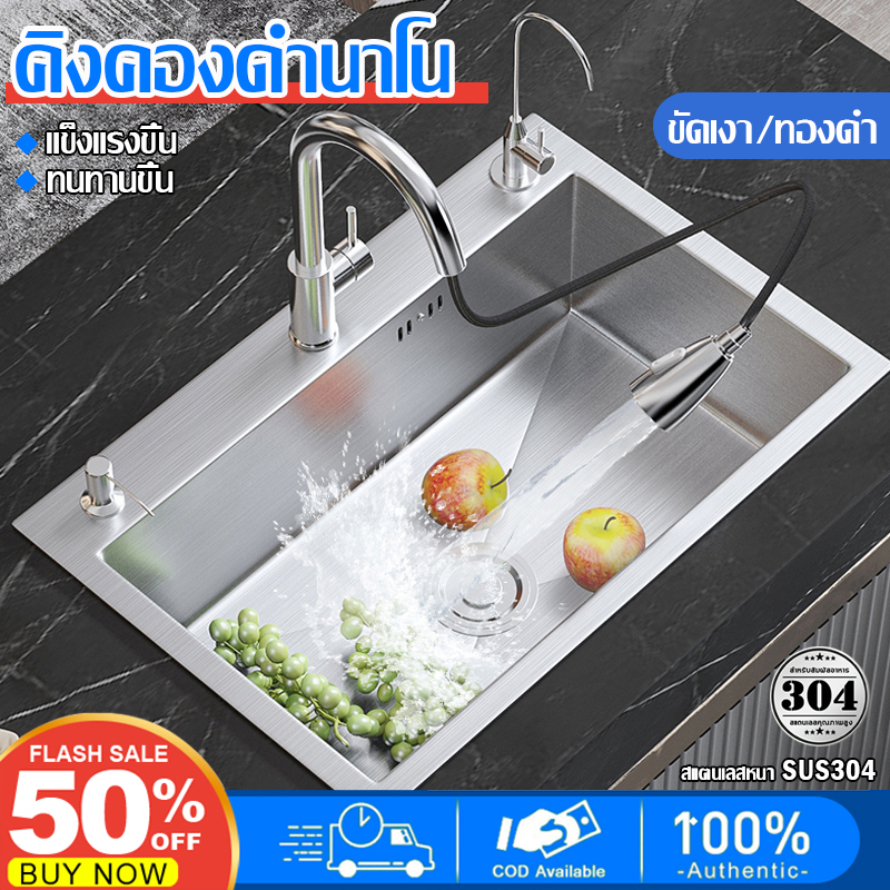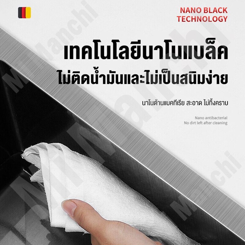 สแตนเลส304 อ่างล้างจาน/ซิงค์ล้างจาน/ซิ้งล้างจาน sink kitchen (นาโนดำ/สแตนเลส)ตะกร้าระบายน้ำ+ก๊อกน้ำ+ท่อระบายน้ำ