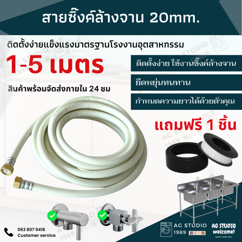 สายต่อซิงค์ล้างจาน0.5-10 เมตร ขนาดงค์ 20mm ทั้ง2 ด้าน ใช้ต่อก๊อก20mm และซิงค์20 mm