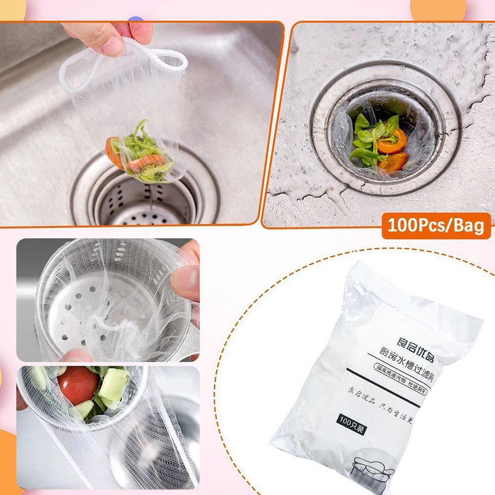 เซคินิว 100ชิ้น/ถุงอ่างล้างจานถังขยะกรอง,ยืดมัลติฟังก์ชั่ทิ้งกรองหน้าจอ,ที่มีคุณภาพสูงทิ้งป้องกันควันอ่างล้างจานถุงตาข่ายล้างจานซ