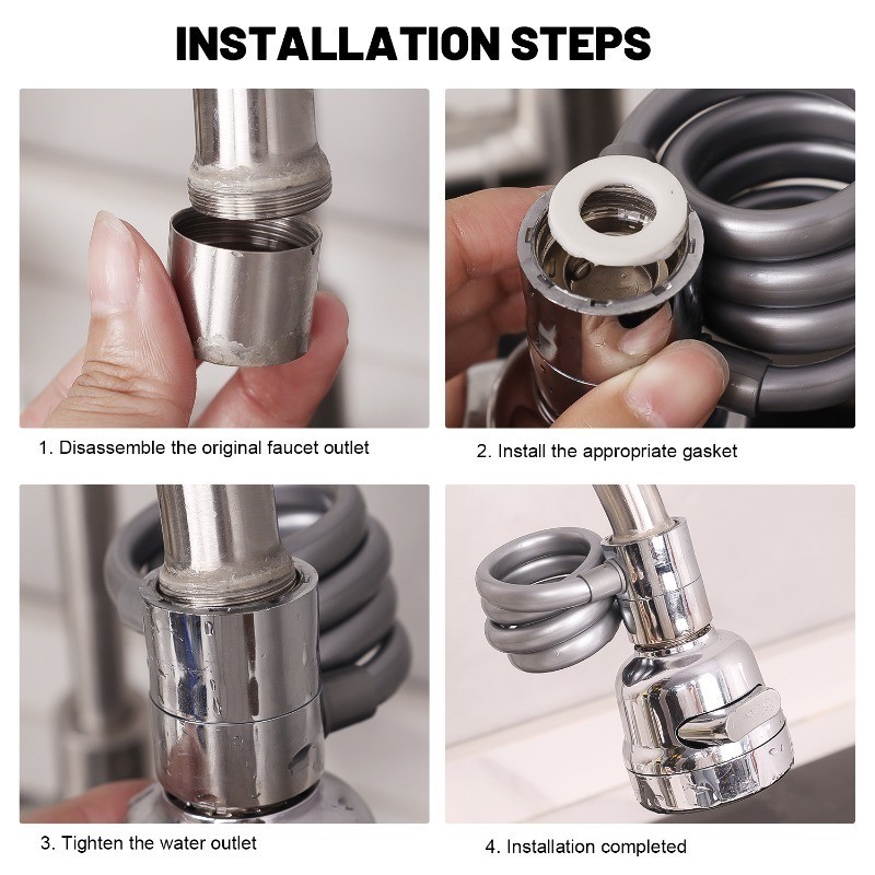 อุปกรณ์ครัวอุปกรณ์เสริม – 360° หมุนปรับก๊อกมือถือ-ตัวขยายก๊อกน้ําป้องกันน้ํากระเซ็น-ท่อต่อก๊อกน้ําอ่างล้างจาน-ยืดฟรีสามโหมดเต้าเสียบน้ํา