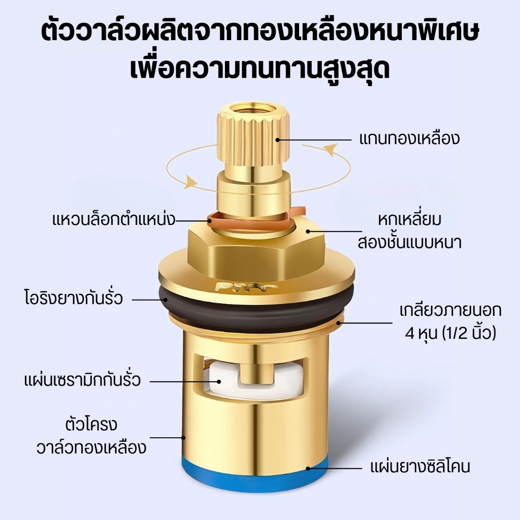 แกนวาล์วก๊อกน้ำเซรามิคทองเหลือง คุณภาพสูง วาล์วหมุนง่าย น้ำไม่รั่วไหล ปิดแน่นสนิท วัสดุมีคุณภาพ