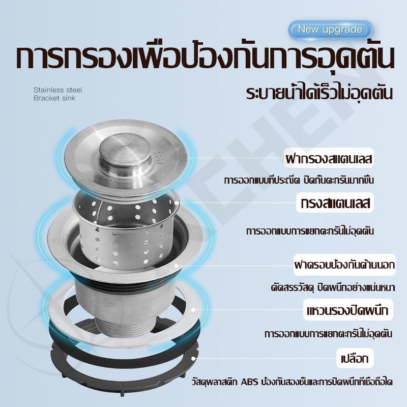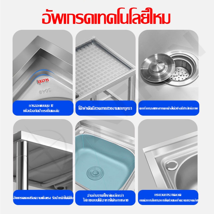 2024รุ่นใหม่หนาขึ้นSUS304 อ่างล้างจาน ซิงค์ล้างจาน ชั้นวางเสริมแรง รับน้ำหนักได้ดี แข็งแรงและทนทาน ส่งตรงจากกรุงเทพ