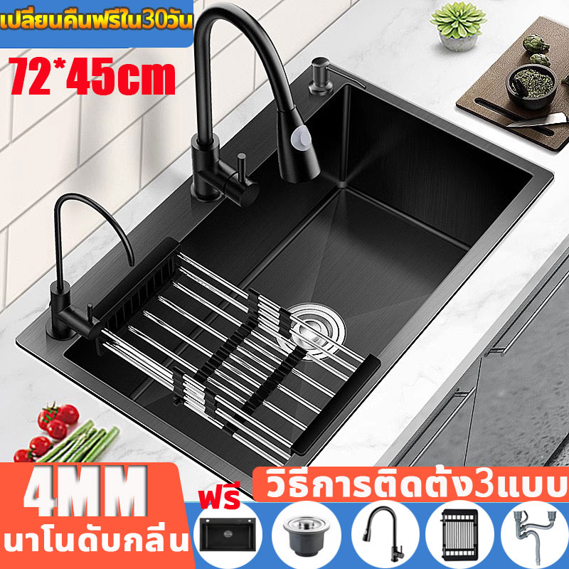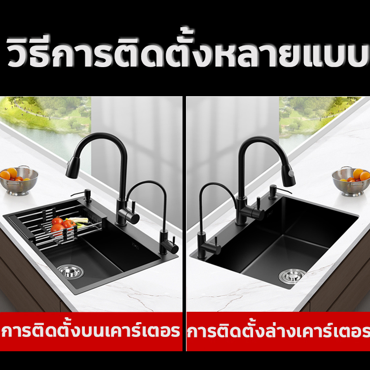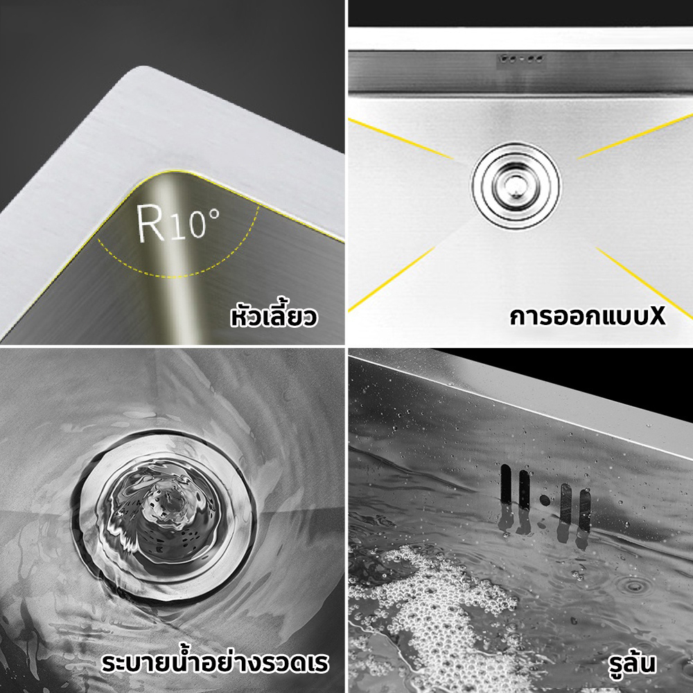 【แถมชุดหรูหรา5ชิ้น-หนาขึ้น4 มม】ซิงค์ล้างจาน 1 หลุม ซิ้งอ่างล้างจาน อ่างล้างจาน/ซิ้งล้างจาน sink kitchen