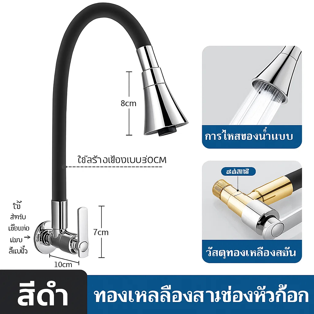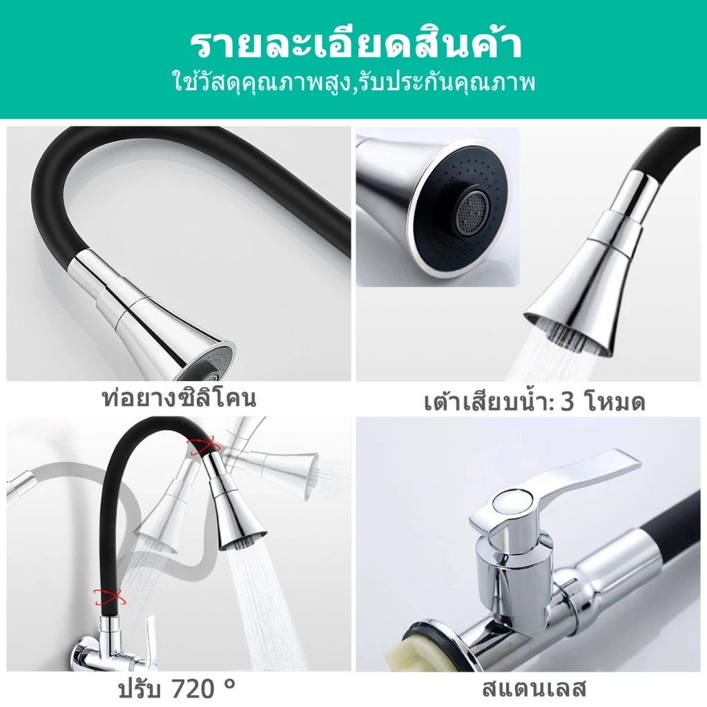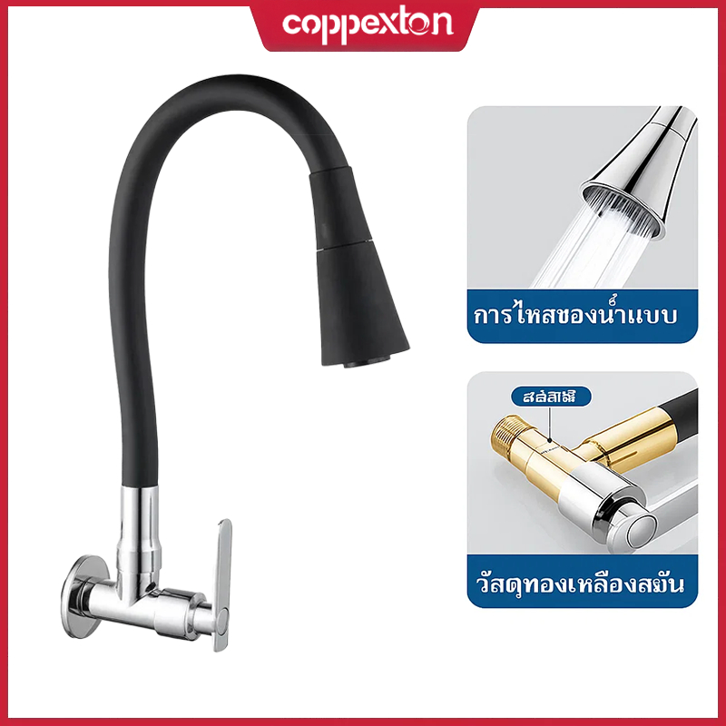 COPPEXTON ก๊อกน้ําล้างจาน คอโค้งแรงดันน้ําขนาดใหญ่ ก๊อกน้ําอ่างล้างจาน 720° เย็นขยายติดผนังหมุนก๊อกน้ําอเนกประสงค์