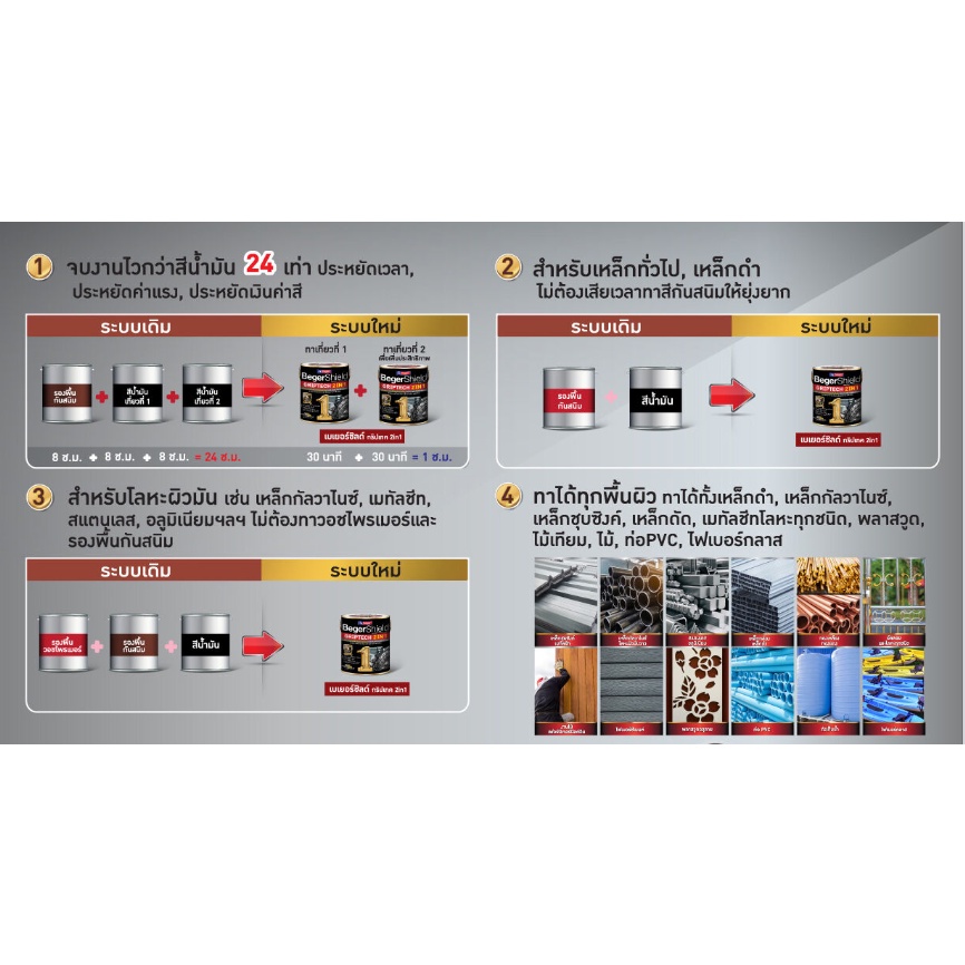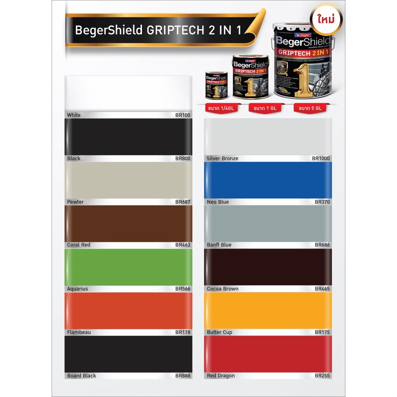 ฺBeger Griptech 2in1 สีทาเหล็ก รองพื้นในตัว สีน้ำมันเงา ทาเหล็ก กาวาไนซ์ กระเบื้อง โลหะทุกชนิด ไม้เทียม ไม้ 0.875 ลิตร