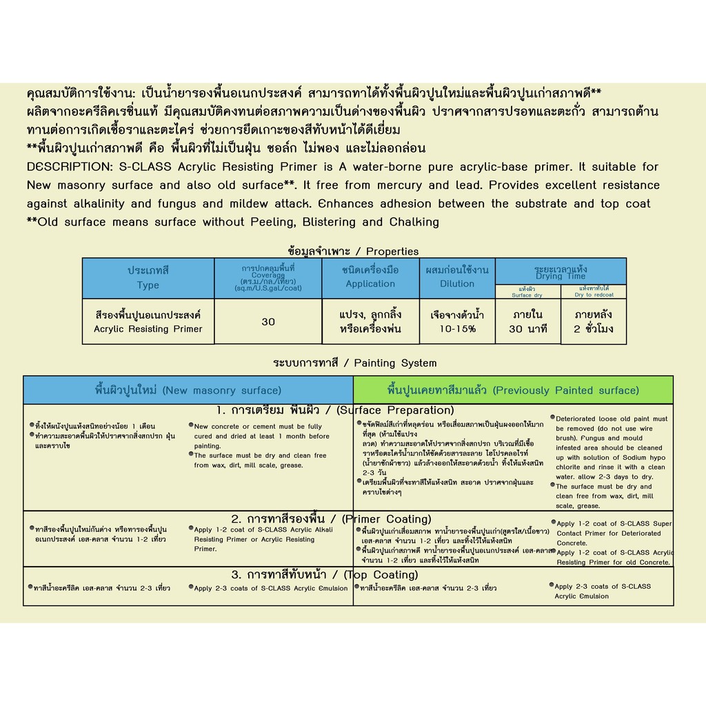 เอสคลาส สีรองพื้นปูนอเนกประสงค์ ทาได้ทั้งปูนใหม่ปูนเก่า เกรดมาตรฐาน ขนาดแกลลอน 3.5 ลิตร แถมแปรงทาสี 1 ด้าม
