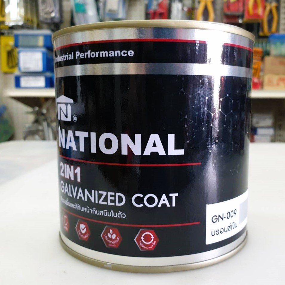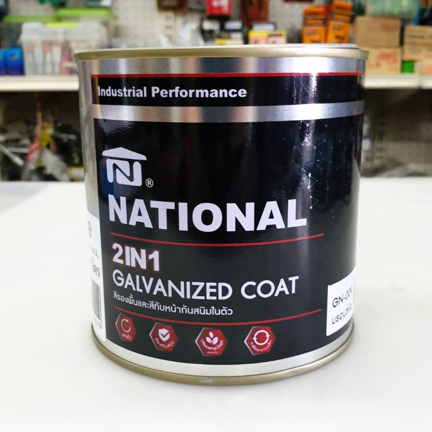 เนชั่นแนล สีเคลือบเงากัลวาไนซ์ 2IN 1 สีเคลือบกึ่งเงา และ สีรองพื้นในตัว สำหรับทาเหล็กกัลวาไนซ์ สแตนเลส ขนาด 0.825 ลิตร