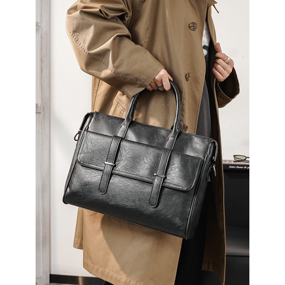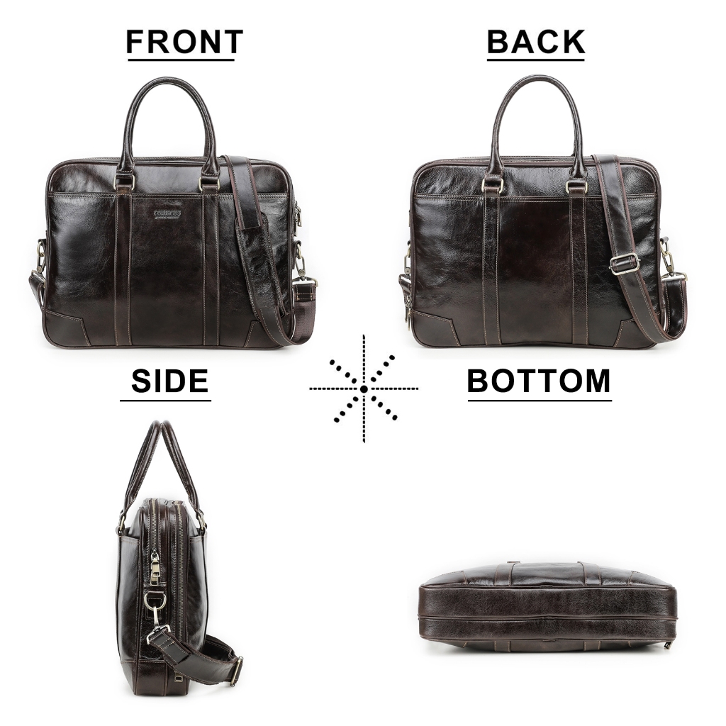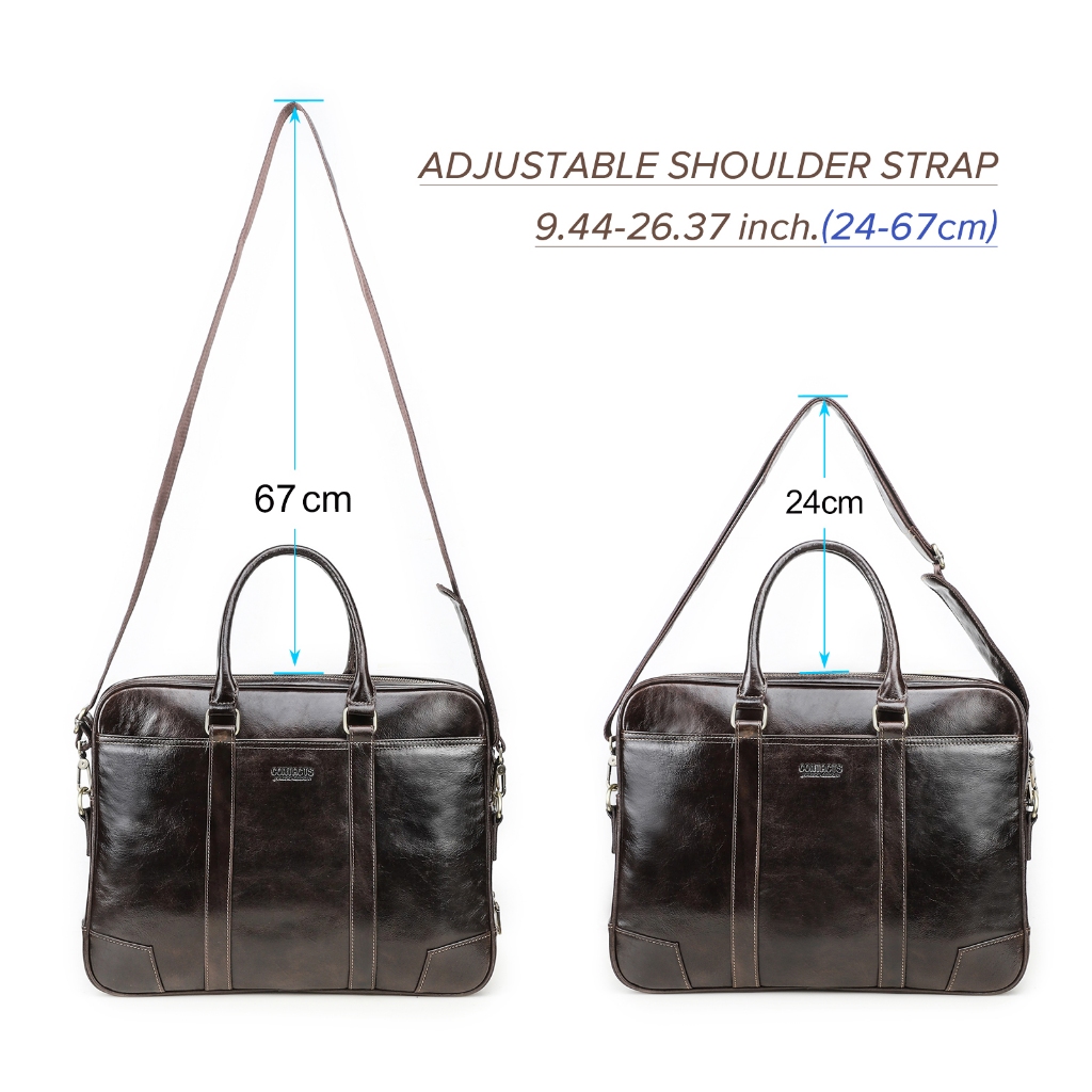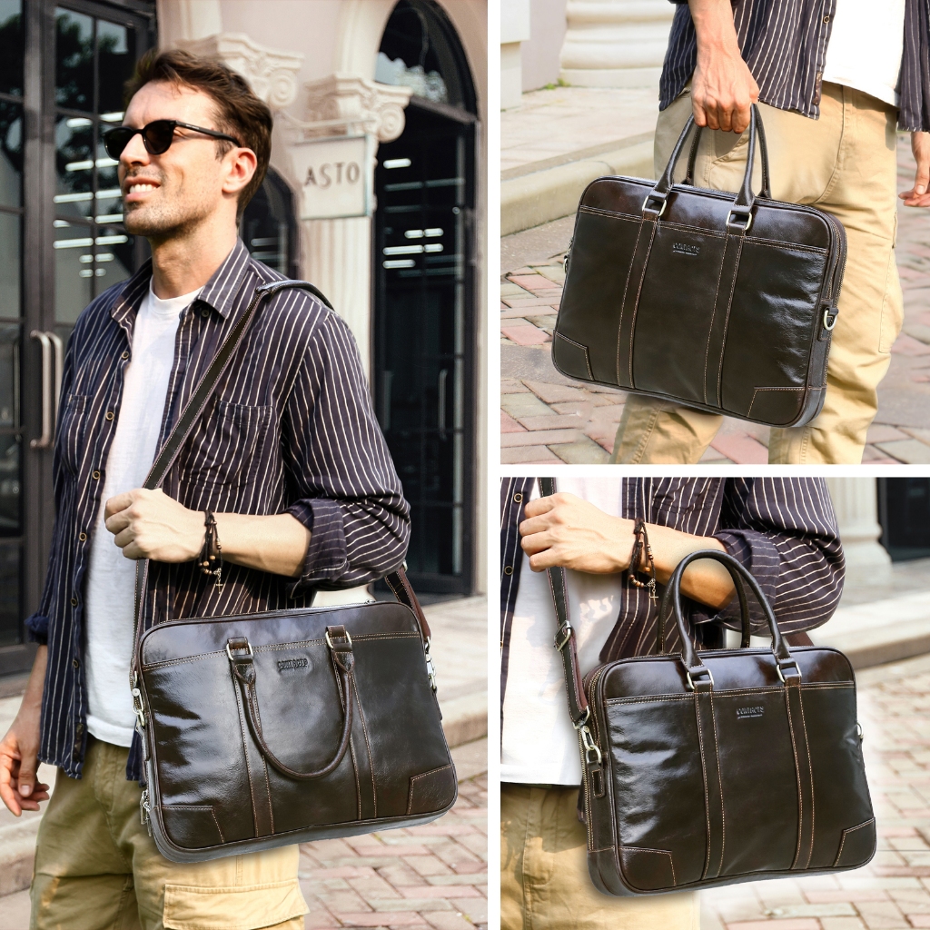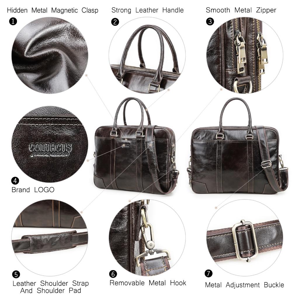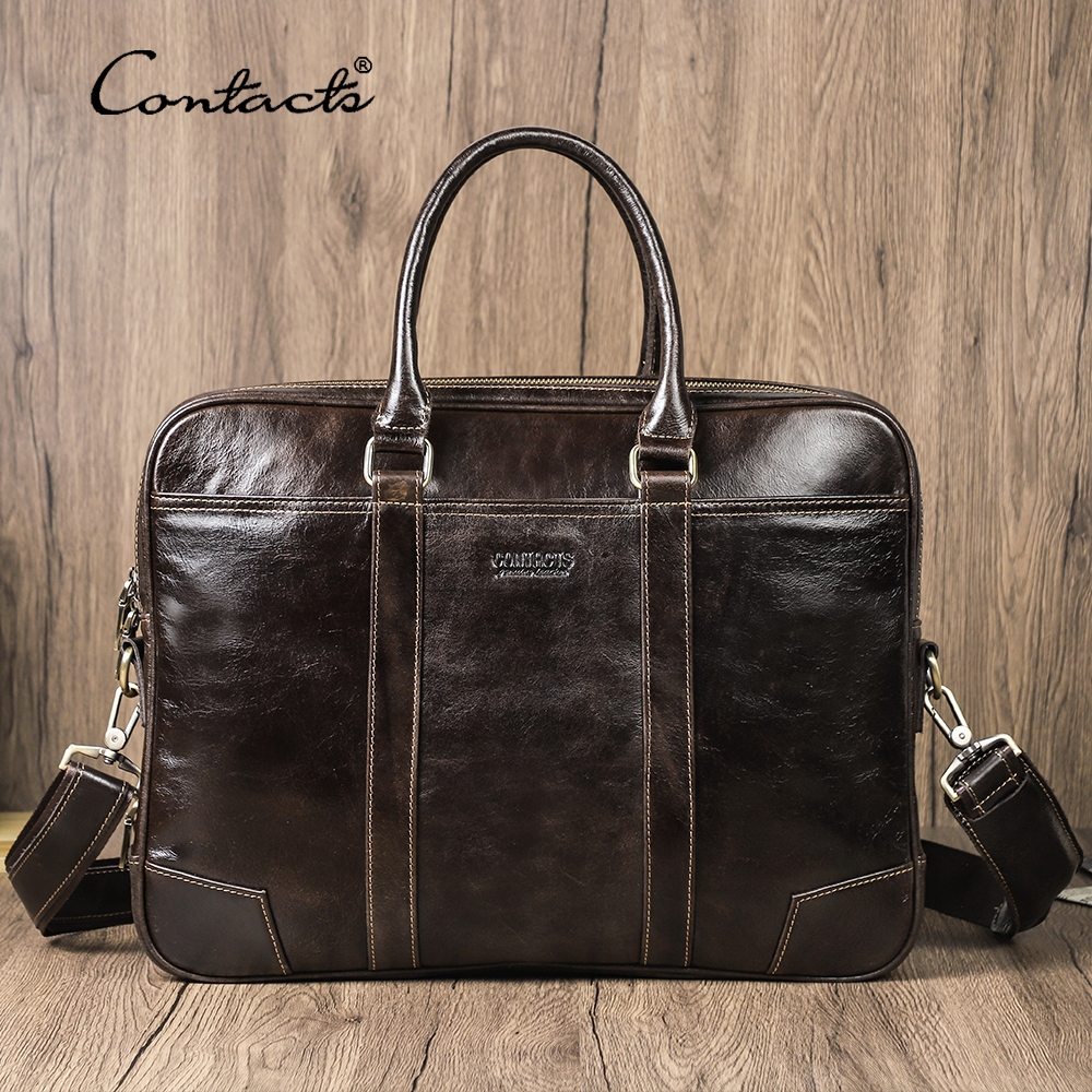 CONTACT’S กระเป๋าธุรกิจหนังแท้สำหรับผู้ชาย กระเป๋าเดินทาง กระเป๋าไหล่คุณภาพสูง กระเป๋าเล็ปท็อปผู้ชายสำหรับแล็ปท็อป 14 “