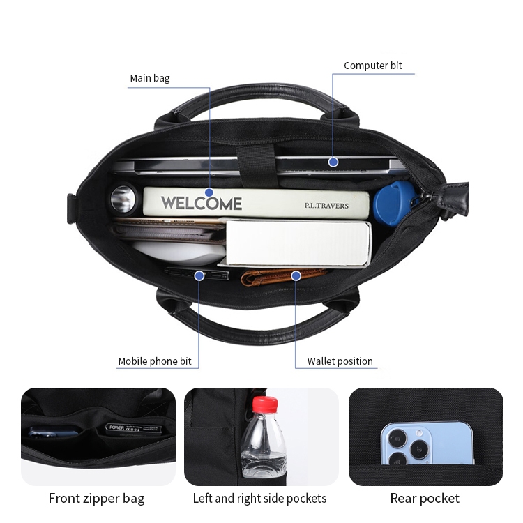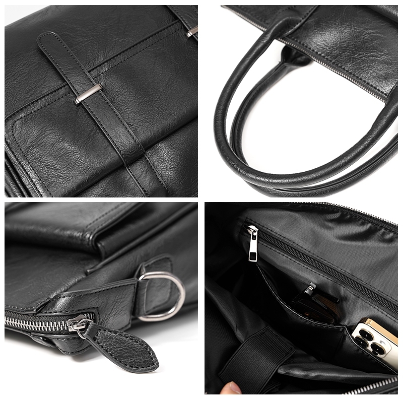 SUNWISH SWS-4015 กระเป๋าถือสำหรับผู้ชาย Messenger หนัง PU สีดำ กระเป๋าเอกสารคอมพิวเตอร์กระเป๋าสะพาย