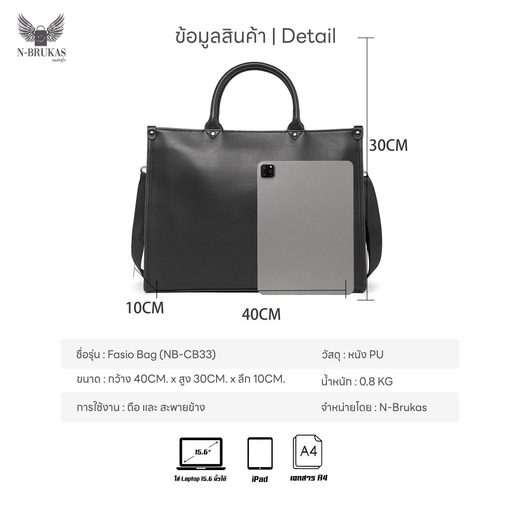 [กระเป๋าทำงานผู้ชาย] FASIO BAG ใส่โน้ตบุ๊ก 15.6” | สะพาย/ถือได้ | กันน้ำ | สไตล์เรียบหรู จาก N-Brukas