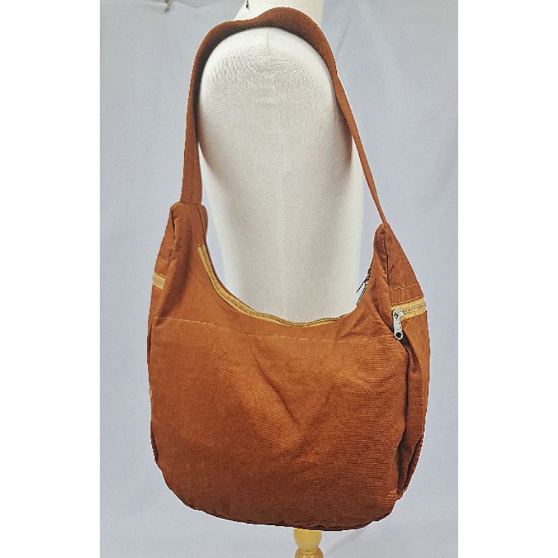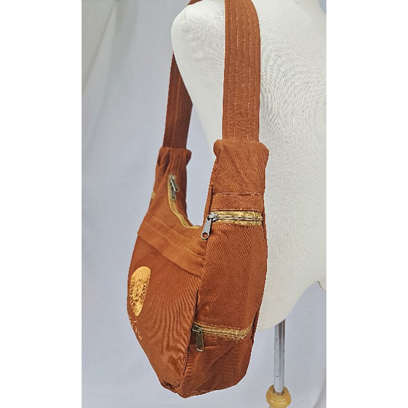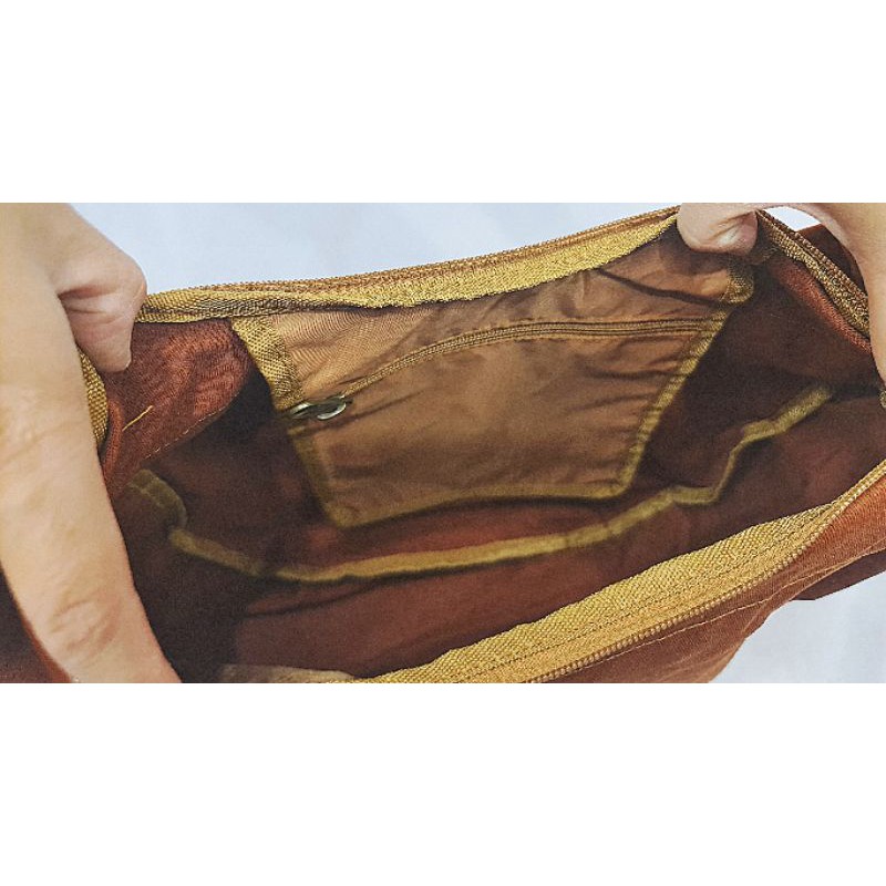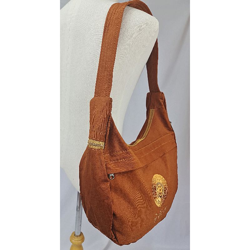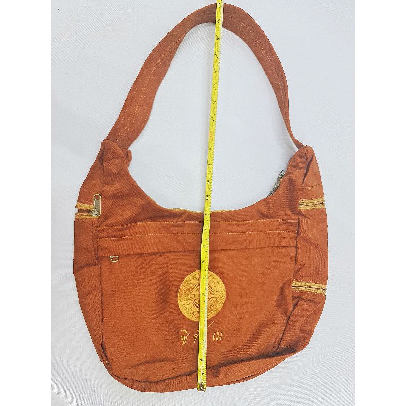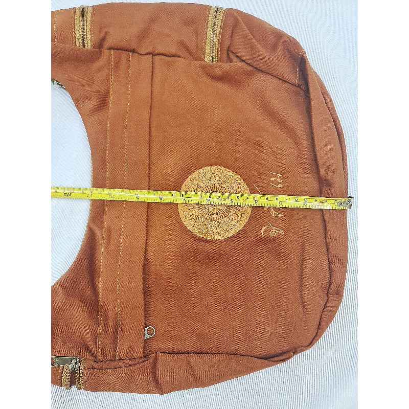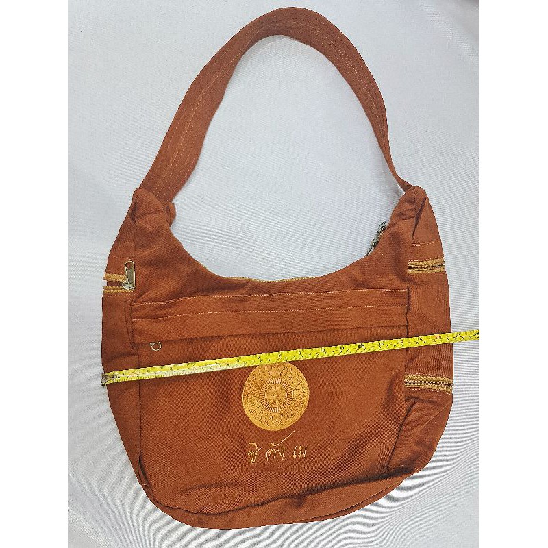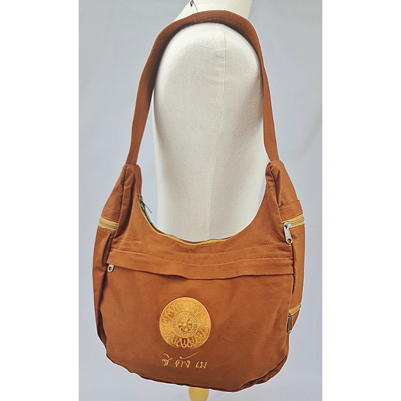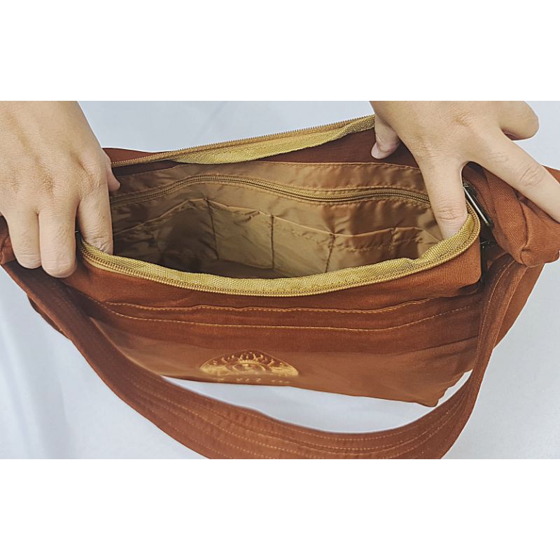 #กระเป๋าสะพายข้าง ย่ามพระสงฆ์ สีแก่น ปักลายธรรมจักร สายเย็บบุหนา(ไม่เจ็บไหล่)