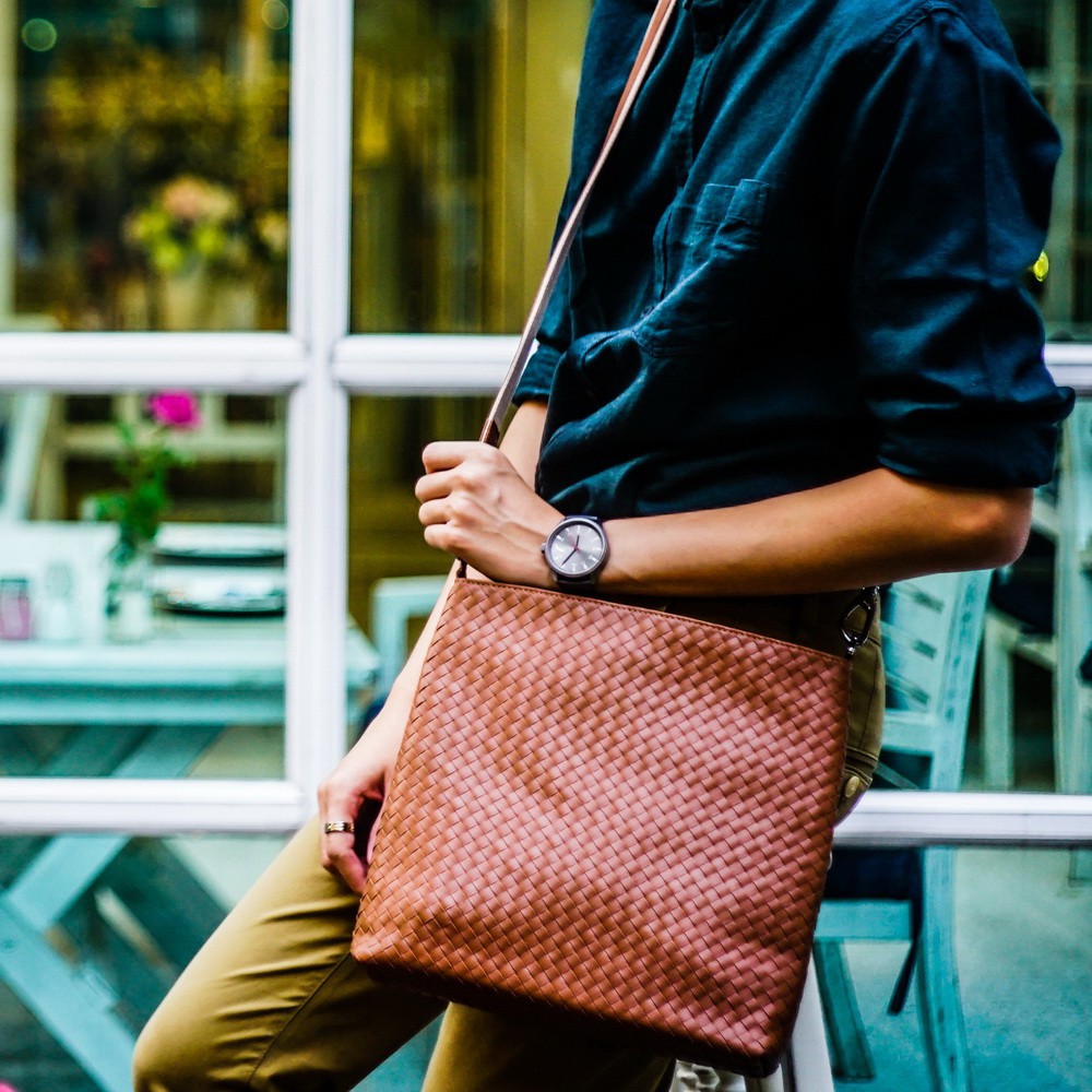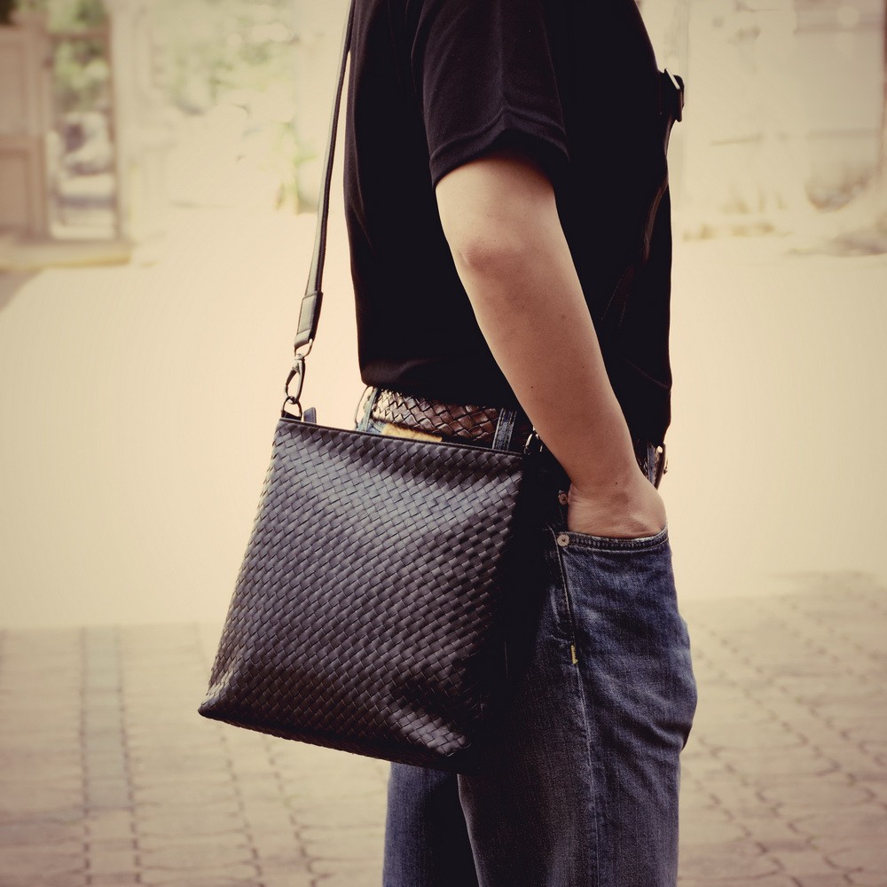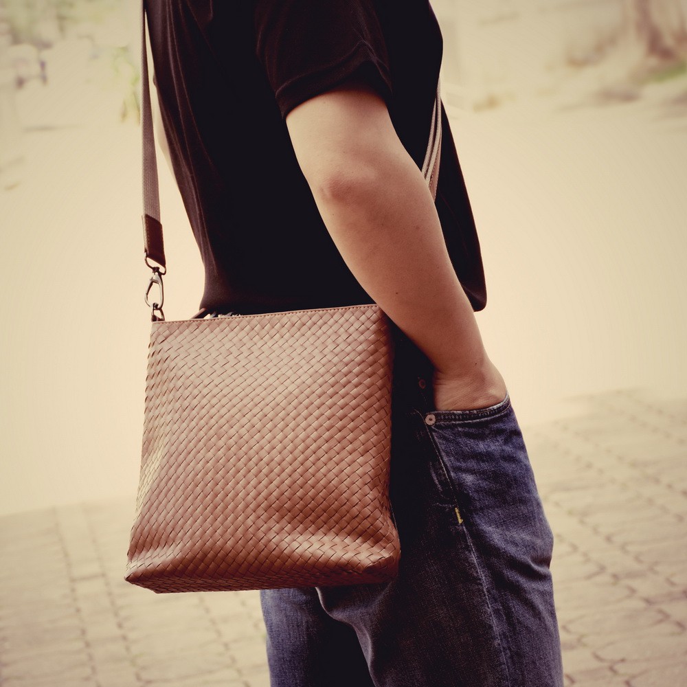 02-355 messenger bag intrecciato กระเป๋าสะพายสานหนังแท้ กระเป๋าผู้ชายสานหนังแท้ แบรนด์ klaas ของแท้