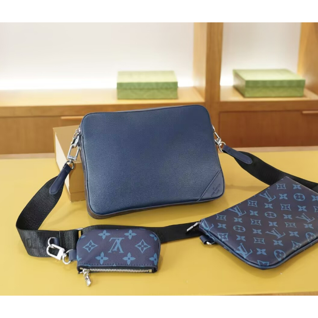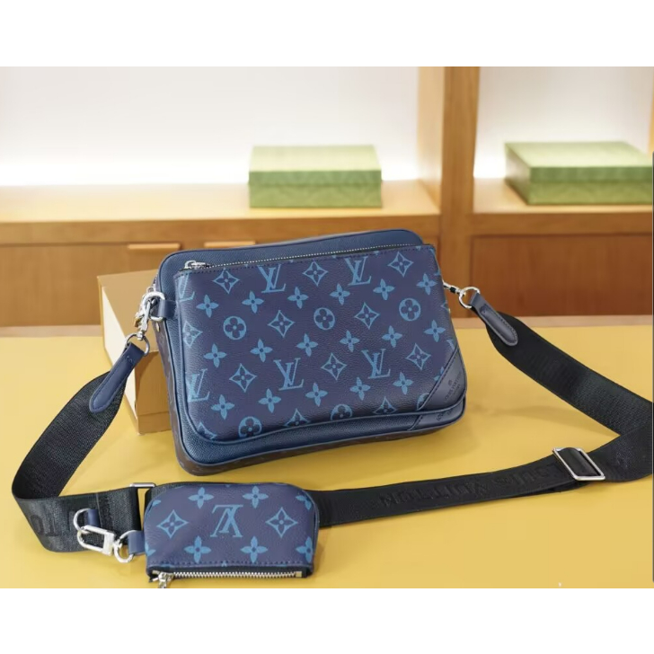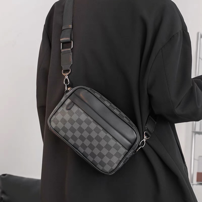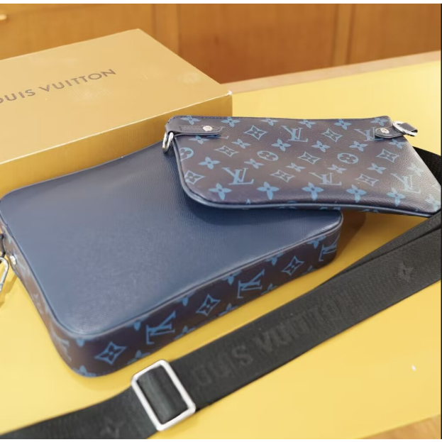 [กล่องของขวัญ] แฟชั่น Lv 3 in 1 กระเป๋ากล้องหนังวัวคุณภาพสูงสบาย ๆ ธุรกิจผู้ชาย Messenger กระเป๋า