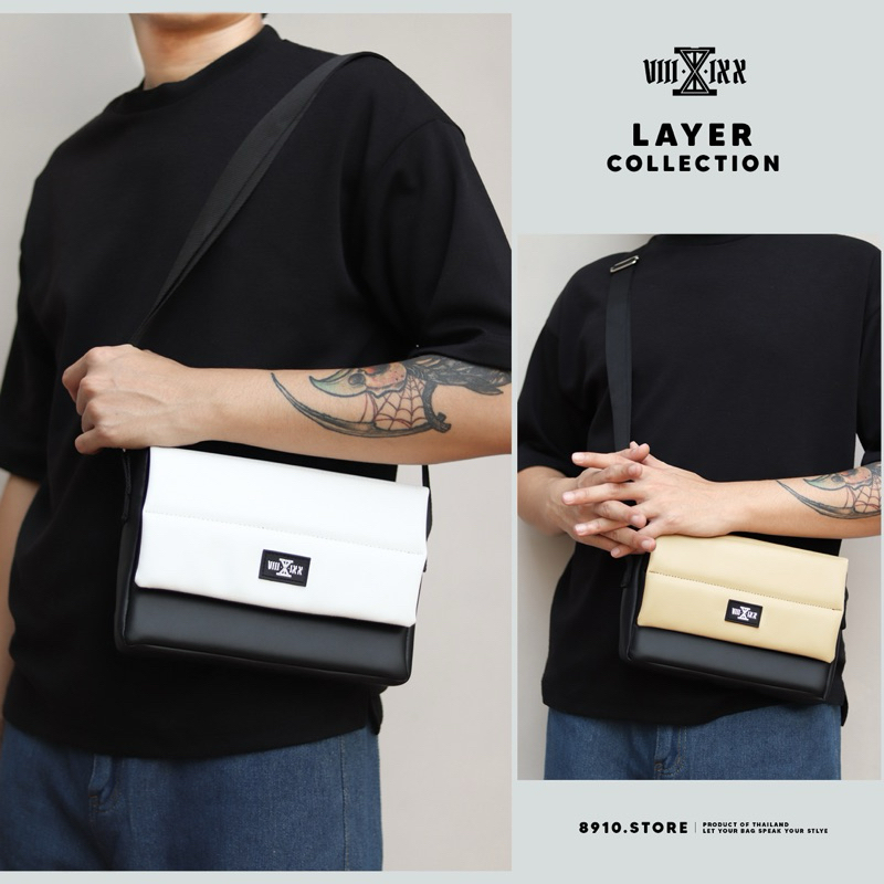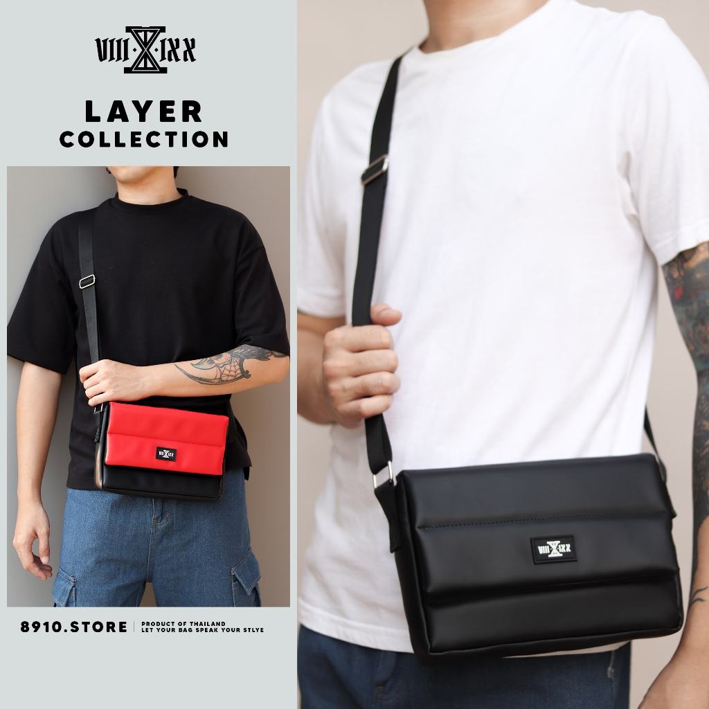 (มีสีใหม่) LAYER 9″ มี 8 สี แบรนด์ 8910 กระเป๋าหนัง สะพายข้าง ทรงนวมหนา ใส่ ipad mini แบรนด์ไทย หนังกันน้ำ