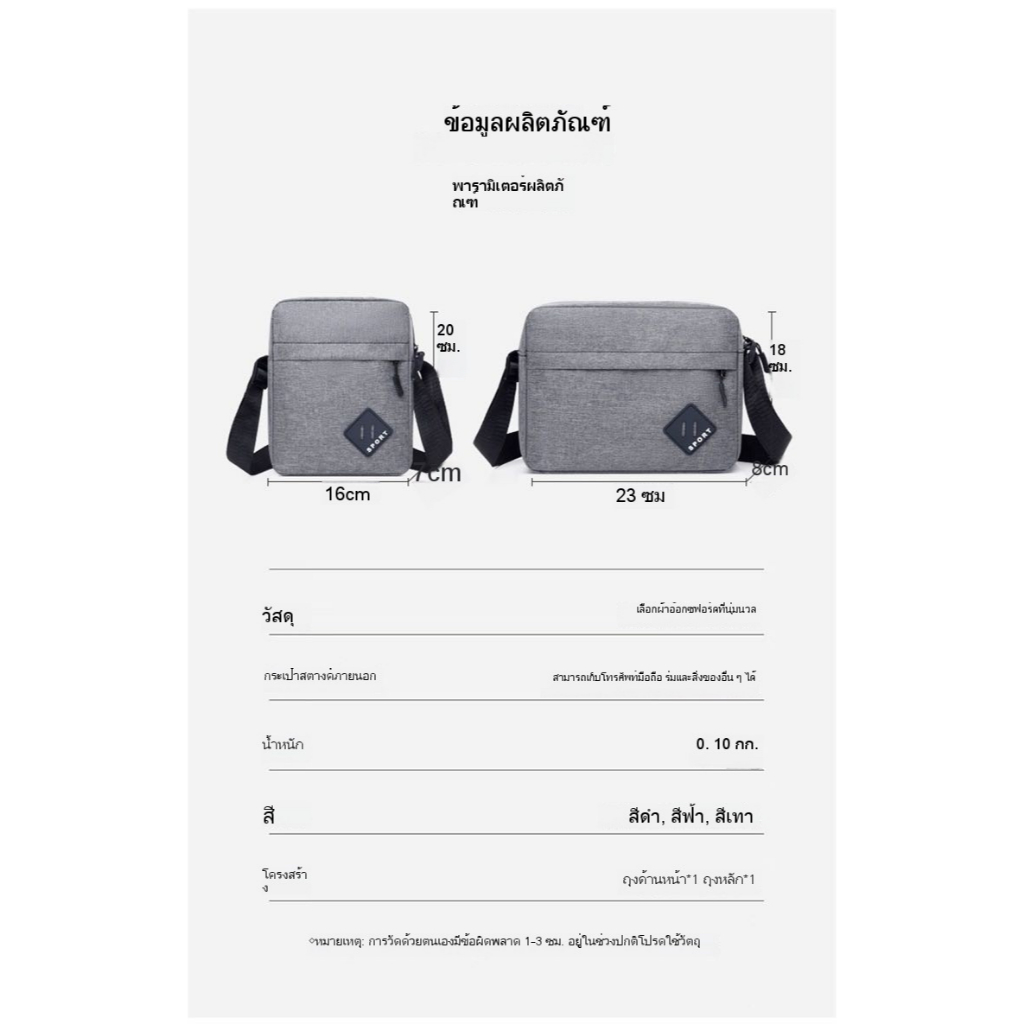 [NG7011] กระเป๋าสะพายข้างผู้ชาย ผ้าออกซ์ฟอร์ดกันน้ำ 2 ดีไซน์แนวตั้ง x แนวนอนคุณภาพดีเยี่ยม