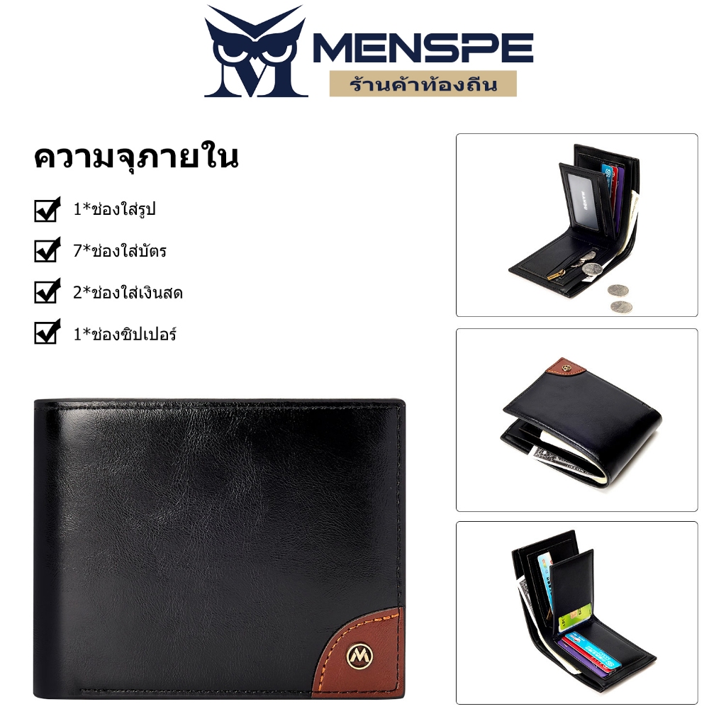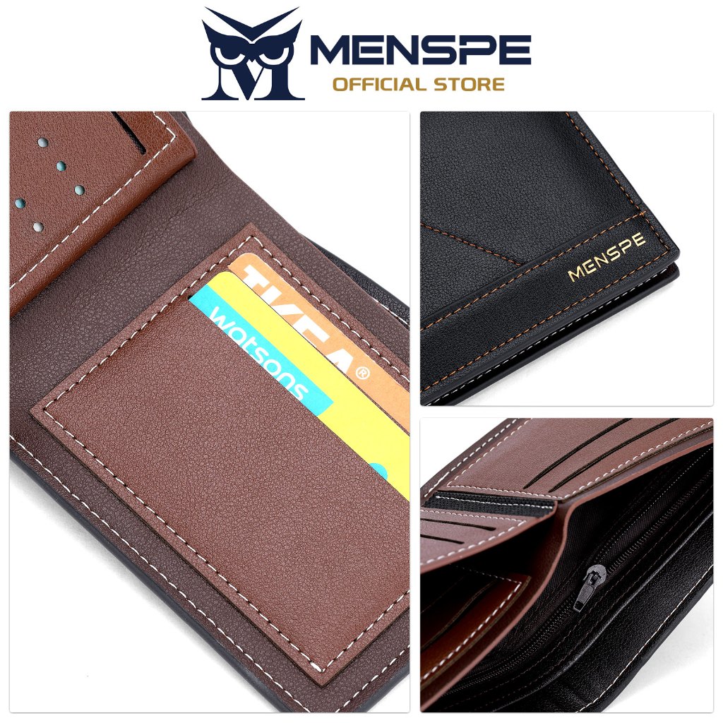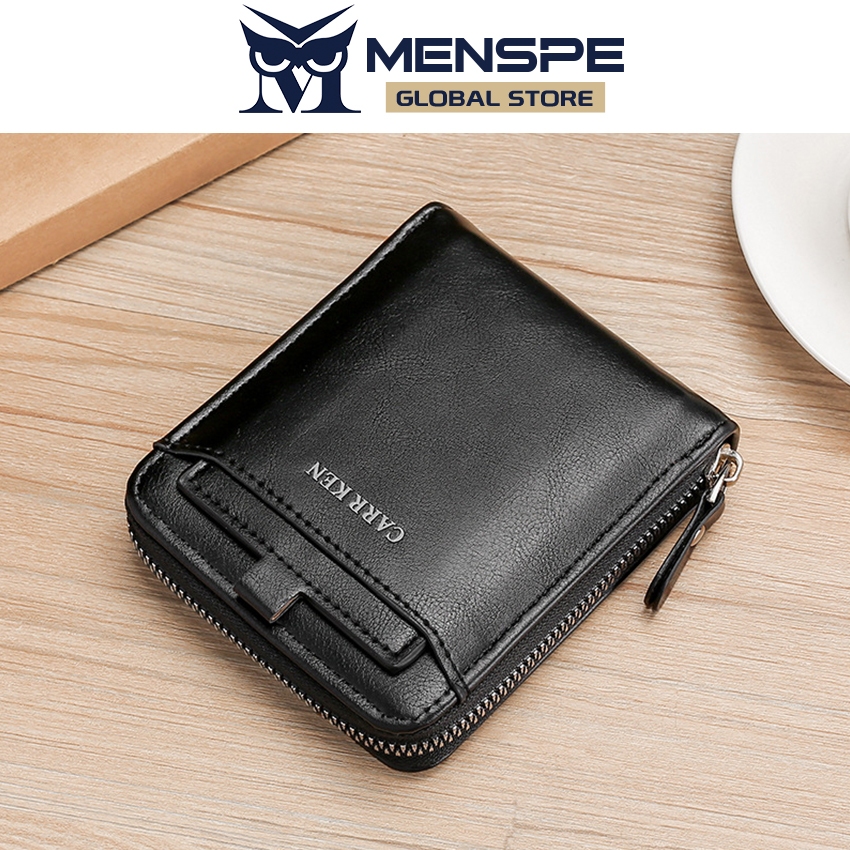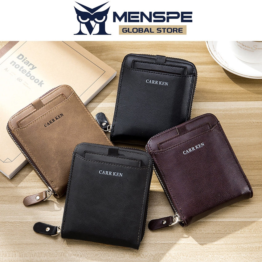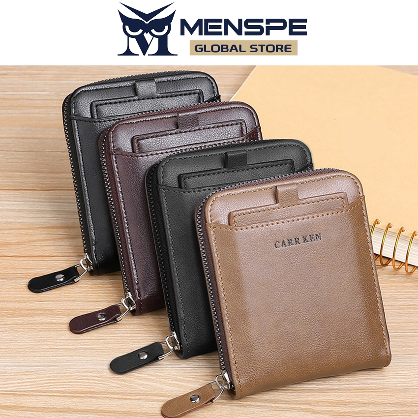 MENSPE กระเป๋าสตางค์ หนัง PU ใบสั้น แต่งซิป สามารถพับได้ สามารถใส่บัตรเครดิตได้ มีหลายตําแหน่ง