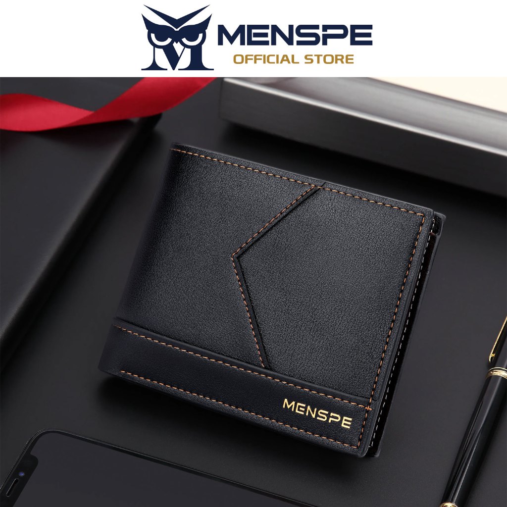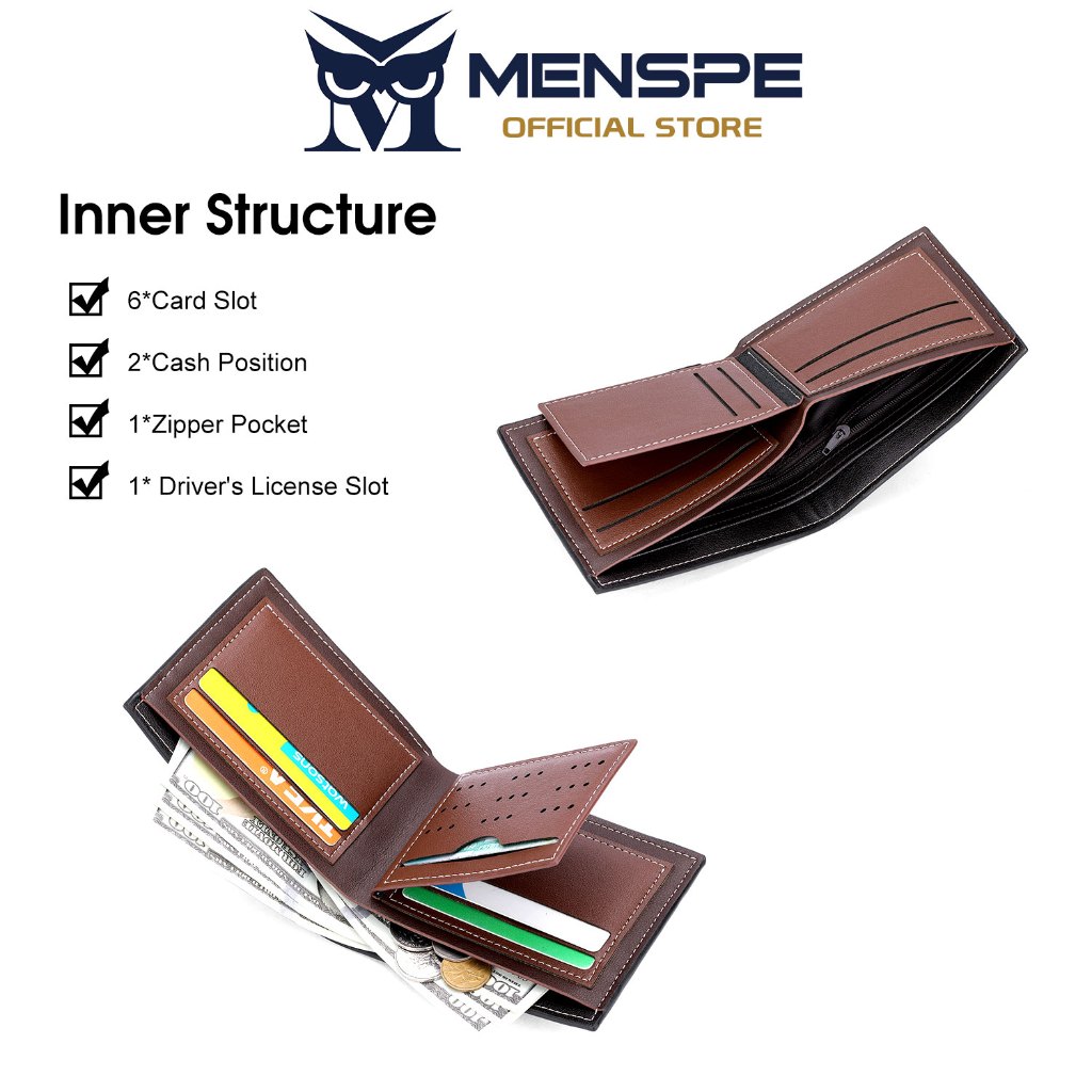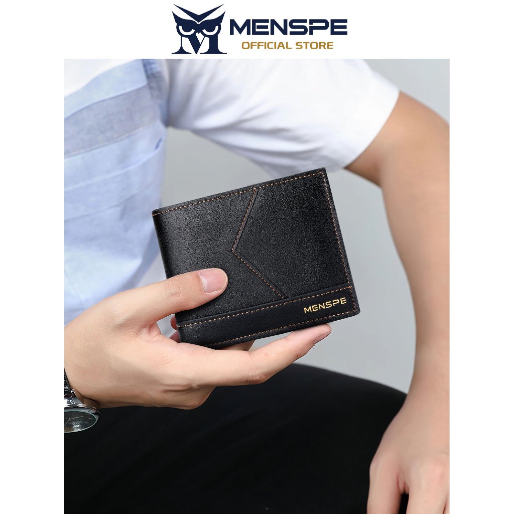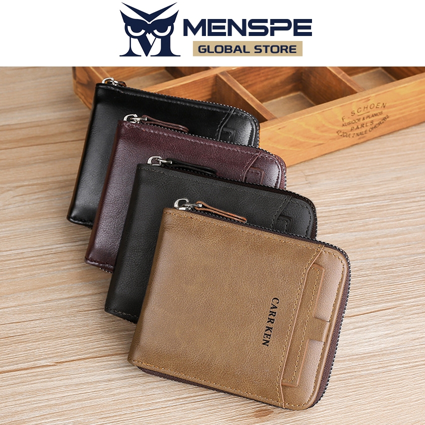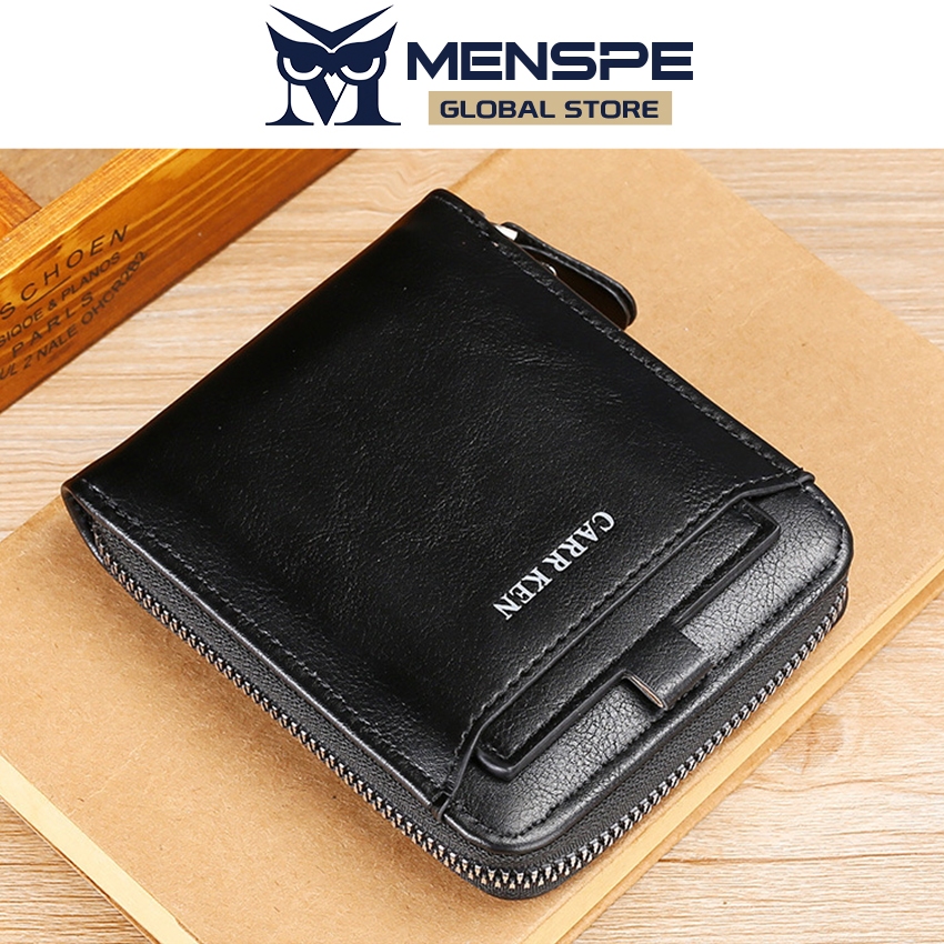 MENSPE กระเป๋าสตางค์ หนัง PU ใบสั้น แต่งซิป สามารถพับได้ สามารถใส่บัตรเครดิตได้ มีหลายตําแหน่ง