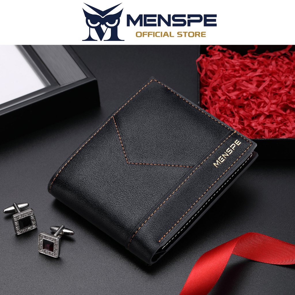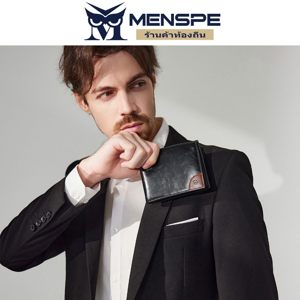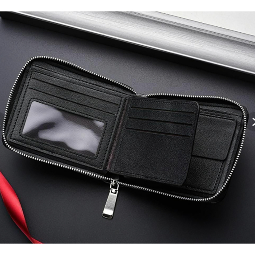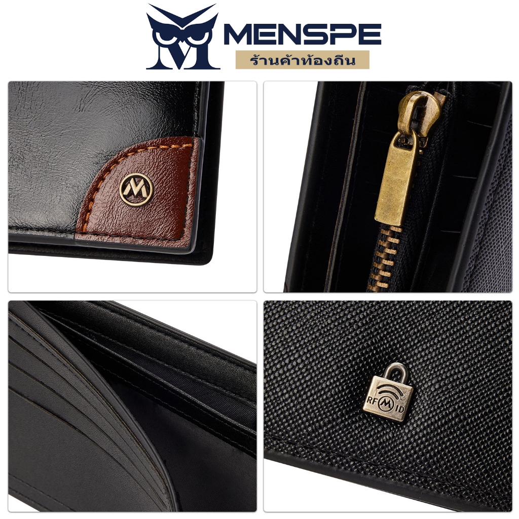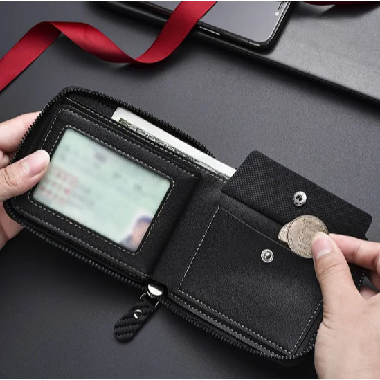 MENSPE กระเป๋าสตางค์ หนัง PU ใบสั้น แต่งซิป สามารถพับได้ สามารถใส่บัตรเครดิตได้ มีหลายตําแหน่ง