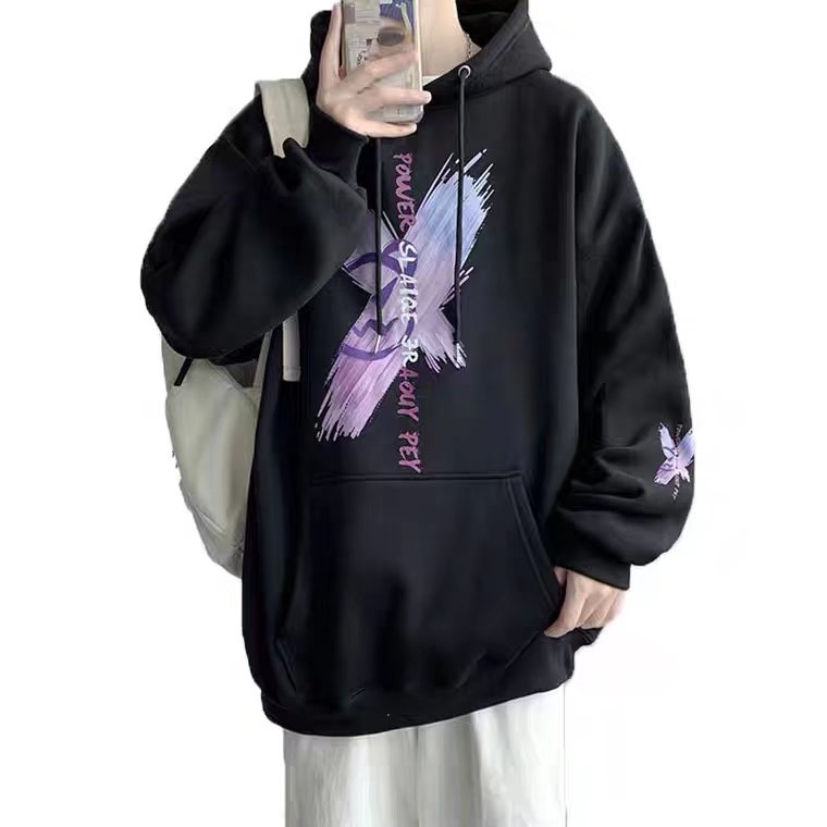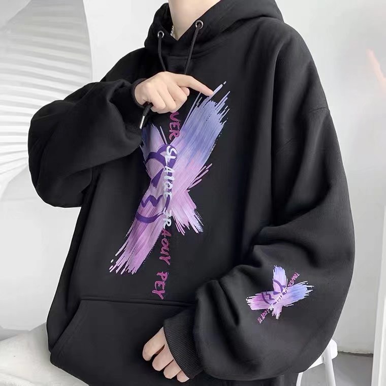 เสื้อกันหนาว มีฮู้ดดี้ พิมพ์ลายกราฟฟิติ การ์ตูนกราฟฟิติ แนวสตรีท ฮิปฮอป ทรงหลวม แฟชั่นเกาหลี สําหรับผู้ชาย และผู้หญิง【M-5XL】