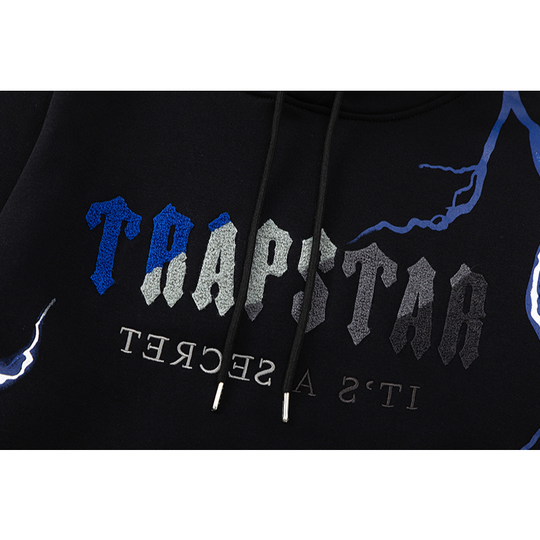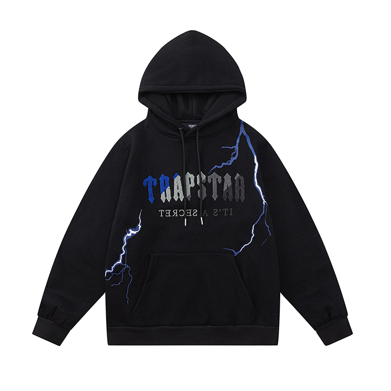 พร้อมสต็อกสไตล์ใหม่ Trapstar Lightning ปักเสื้อยืดแขนยาวผ้าฝ้ายแท้มีฮู้ด