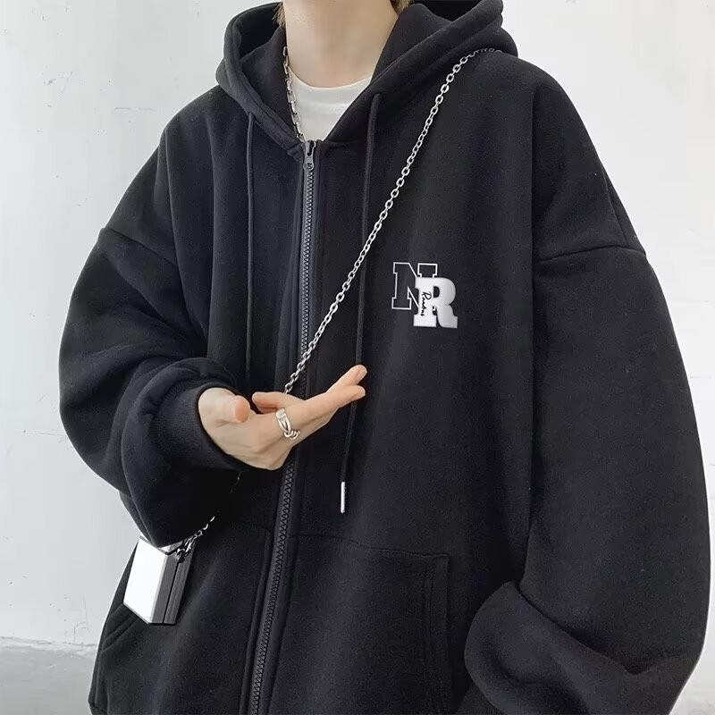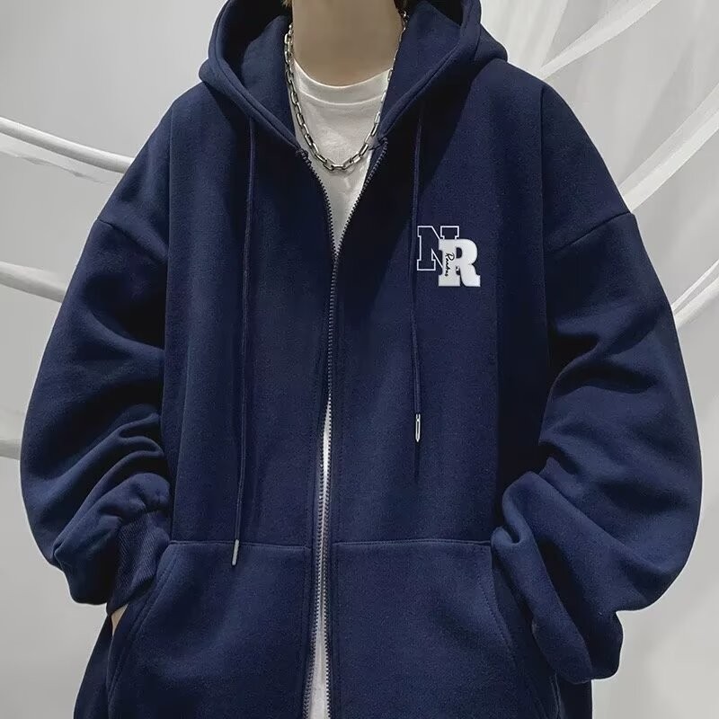 คาร์ดิแกนแจ็คเก็ตมีฮู้ดเสื้อกันหนาวผู้ชาย/ผู้ชายคู่หลวมมีฮู้ดกีฬายอดนิยม/ลำลองเกาหลี Zip Jacket