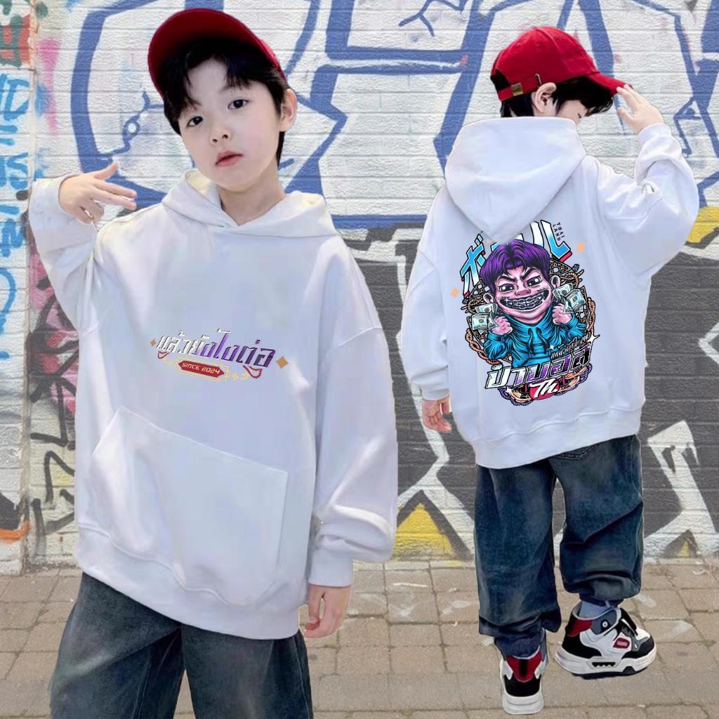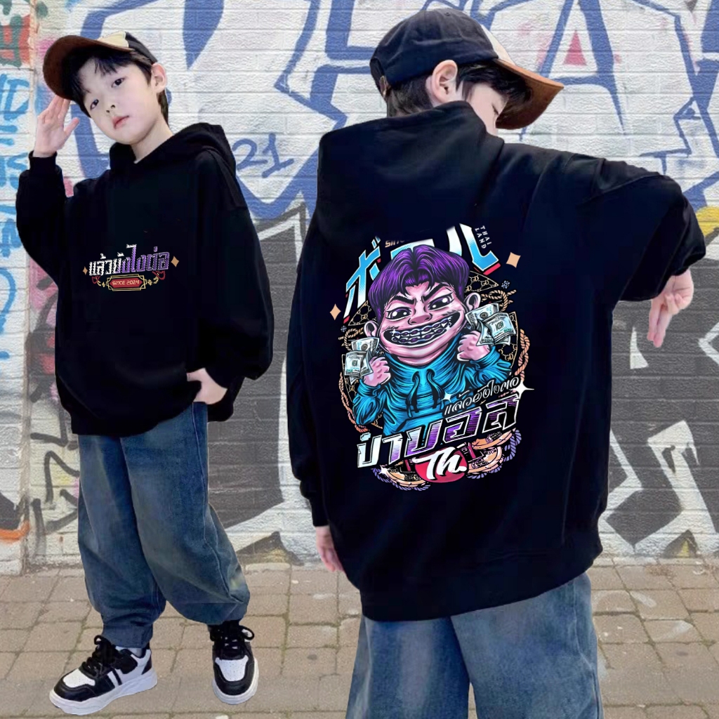 พิมพ์ลาย Apichat Farm ใส่สบาย ไม่หด ไม่ย้ เสื้อผ้าเด็ก: เด็ก Hoodie There are two color options available: black and whi