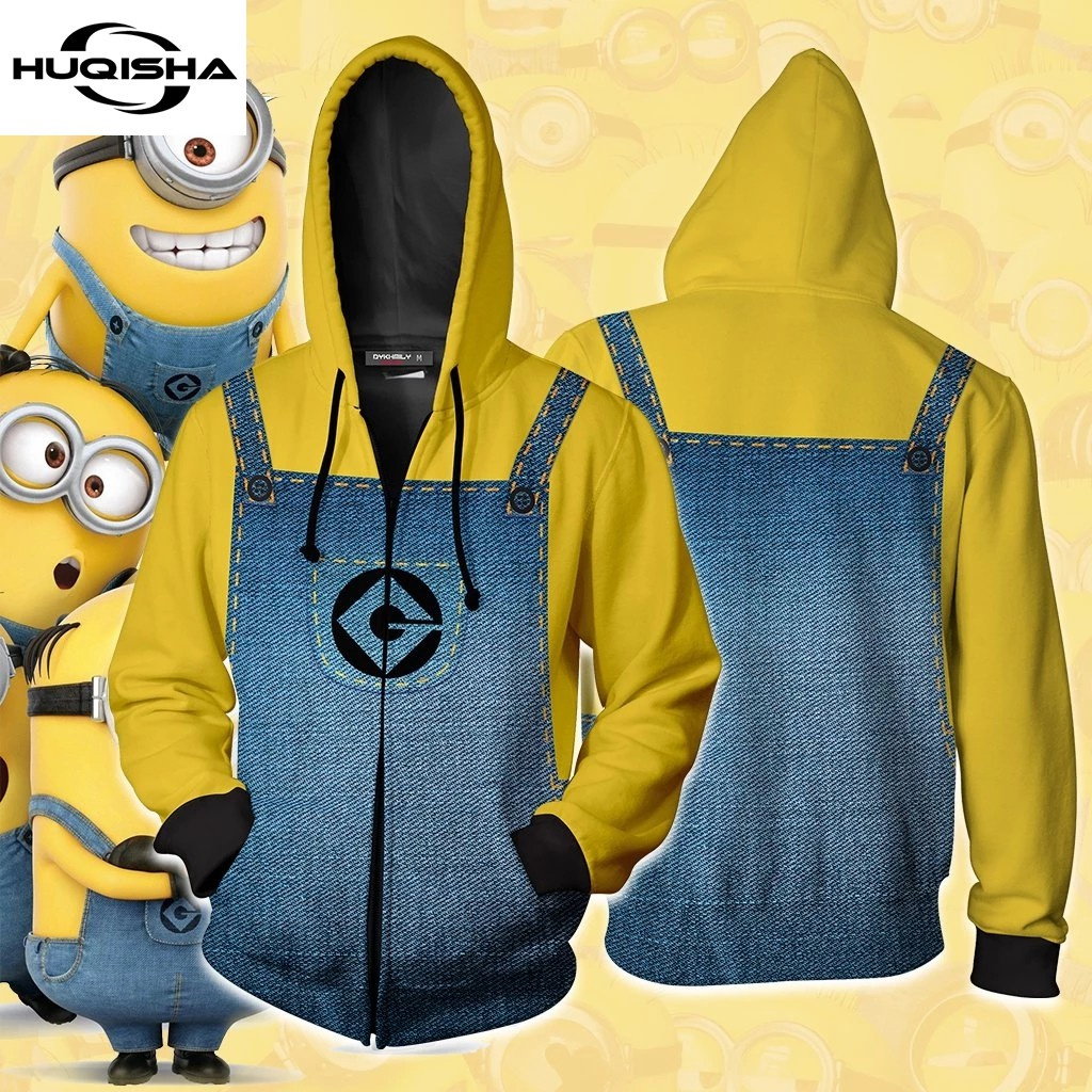 ใหม่เสื้อแจ็คเก็ตเสื้อฮู้ดดี้พิมพ์ลายการ์ตูน Minions Comics 3D แฟชั่นสําหรับผู้ชาย