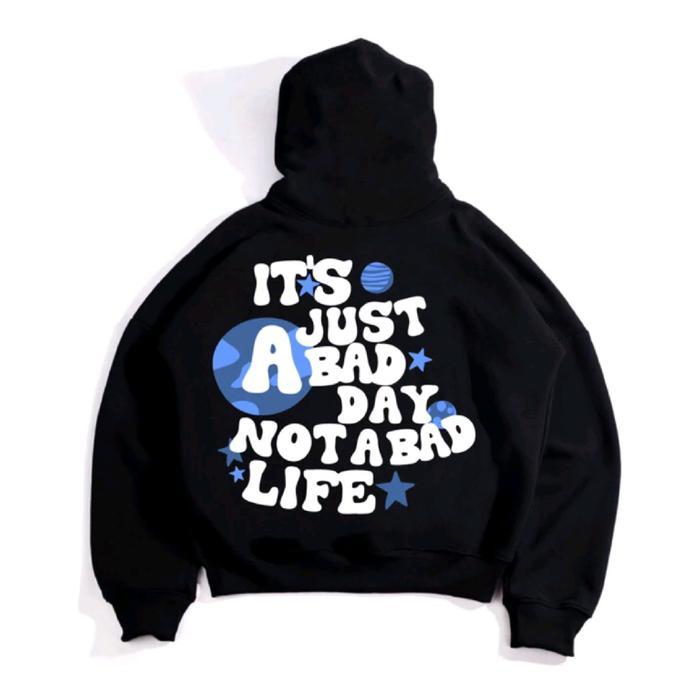 🐳【boxy hoodie】 เสื้อฮู้ดทรงหลวมโอเวอร์ไซส์ Life is Not Bad ยูนิเซ็กซ์ ผ้าฝ้ายแท้ เสื้อฮู้ดผ้าฝ้ายคุณภาพสูง แขนยาว Distro