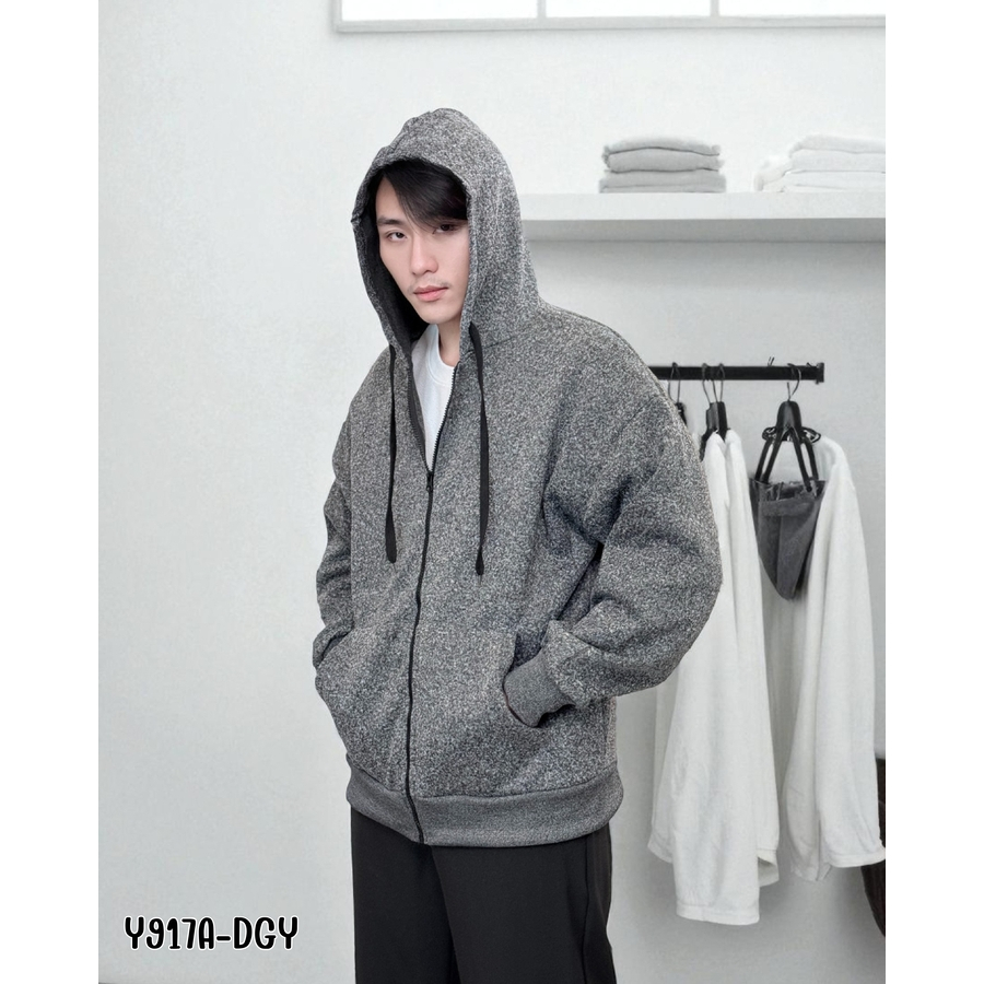 เสื้อแจ็คเก็ต เสื้อฮู้ดแขนยาว พร้อมซิป เชือกรูด unisex เสื้อแจ็คเก็ตกันหนาว แขนยาว กระเป๋าขนาดใหญ่สองใบ ใส่สบายๆ