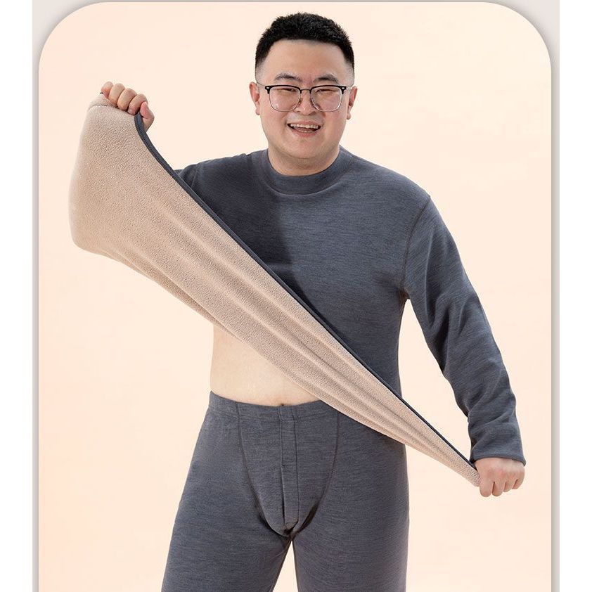 ชุดชั้นใน เสื้อคอเต่า แขนยาว ผ้ากํามะหยี่ แบบหนา เข้ารูป พลัสไซซ์ 3XL 4XL 5XL สีกากี เทา ดํา ขาว สําหรับผู้ชาย