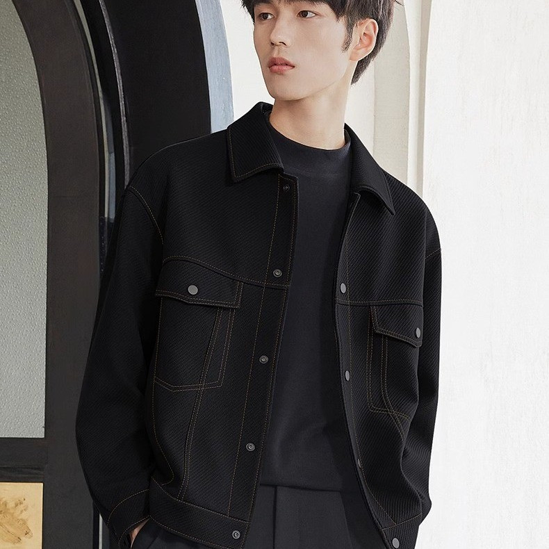[COOL BROTHER]แจ็คเก็ตสองชิ้นแบบประกบสำหรับผู้ชาย ออกแบบในสไตล์เกาหลี สวมใส่ได้ทั้งฤดูใบไม้ผลิและใบไม้ร่วง ทรงหลวมสบาย สไตล์เตรียมกลางคุณภาพสูง