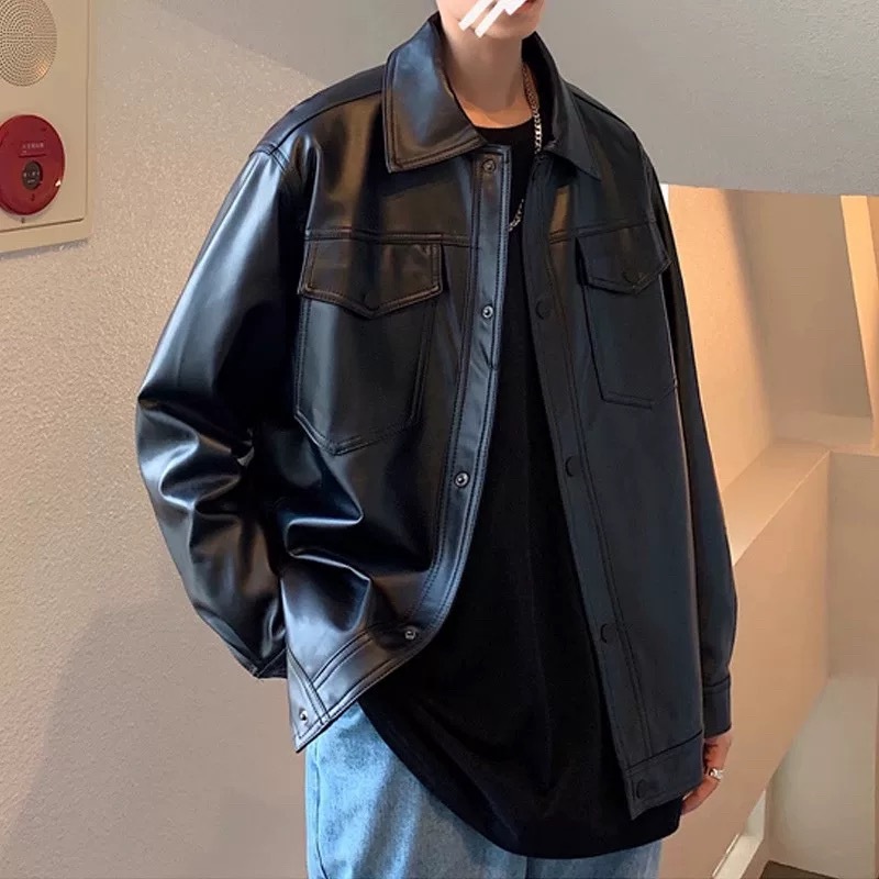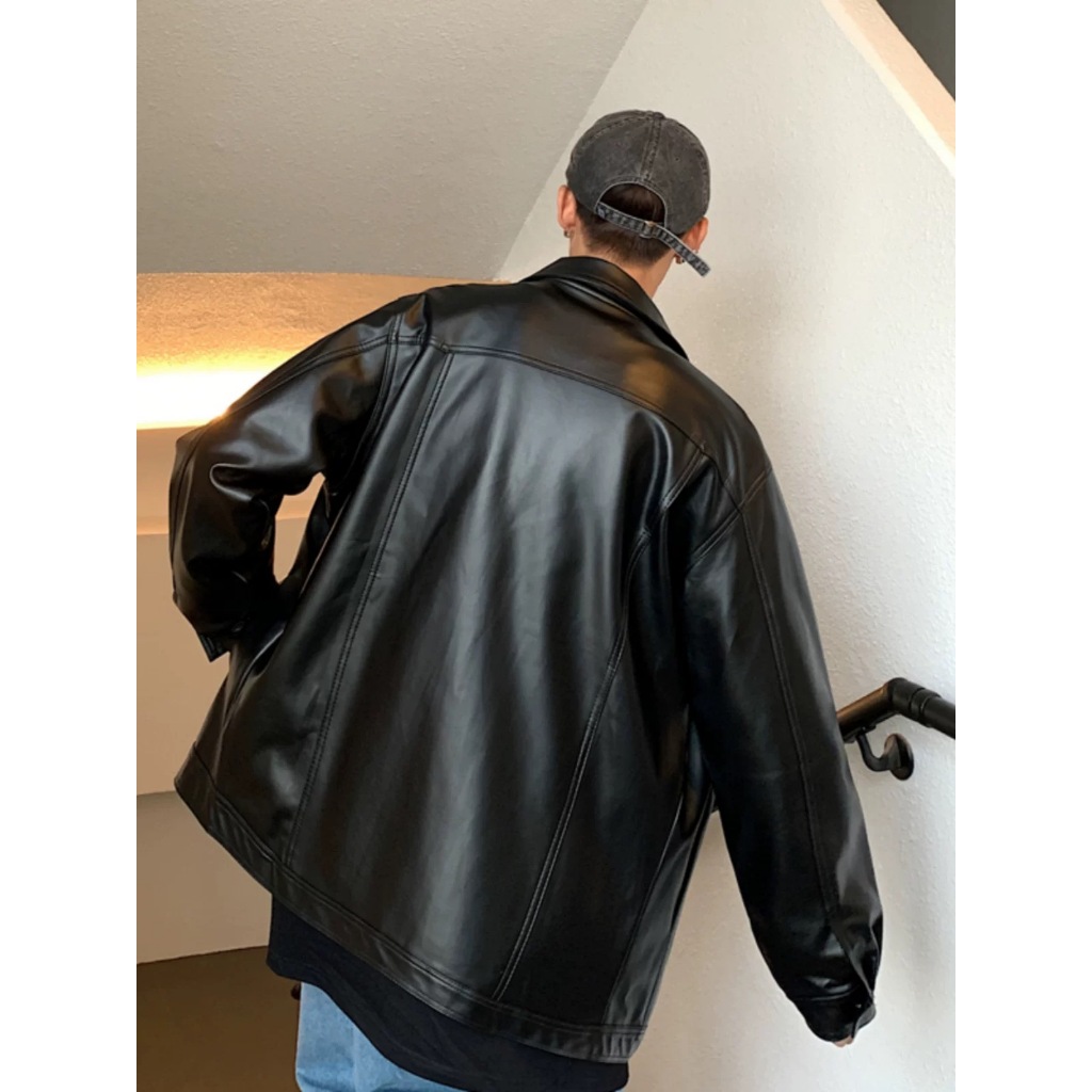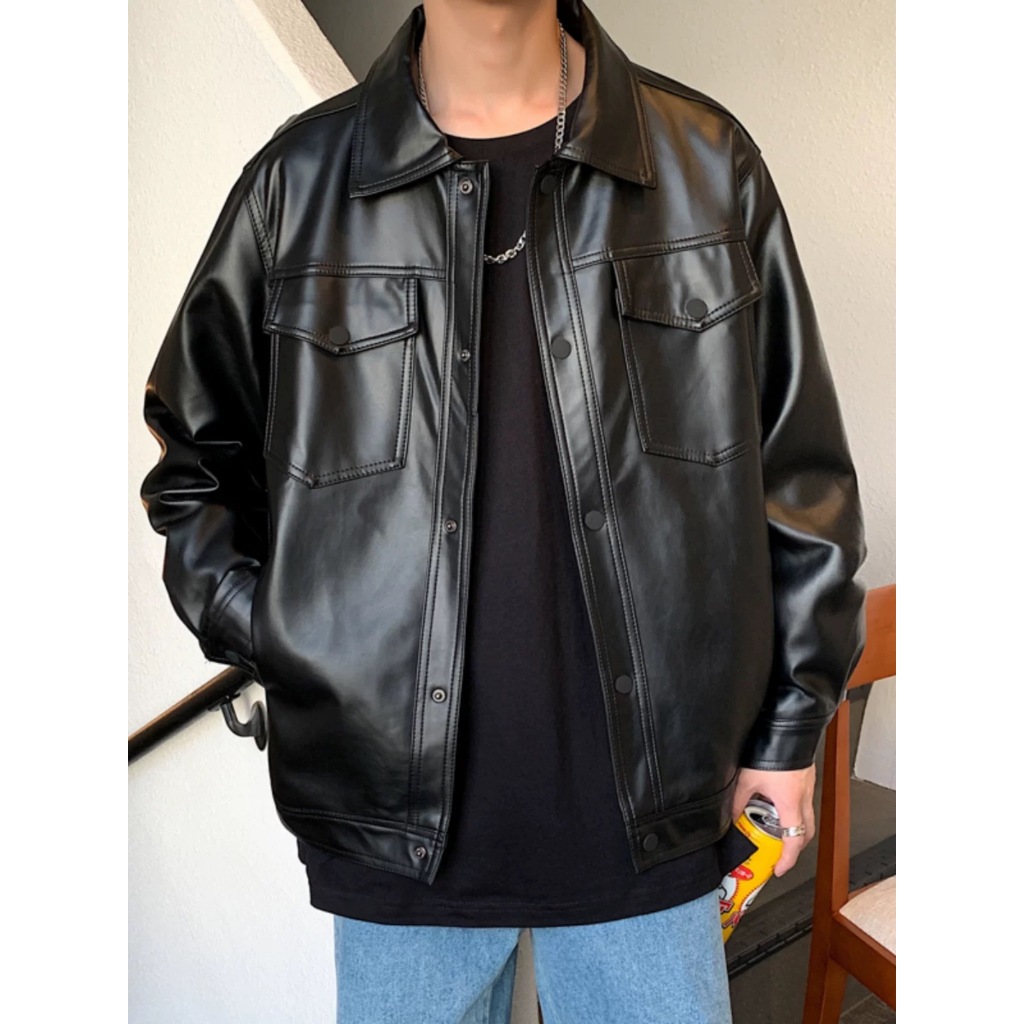 Chaogongfang เสื้อแจ็คเก็ตหนัง สไตล์เกาหลีย้อนยุค สําหรับผู้ชาย