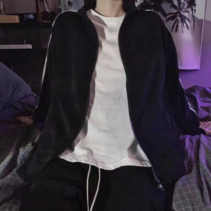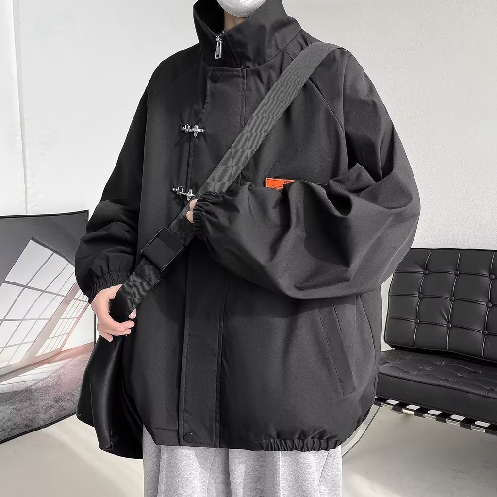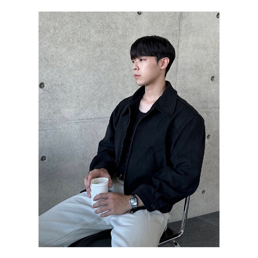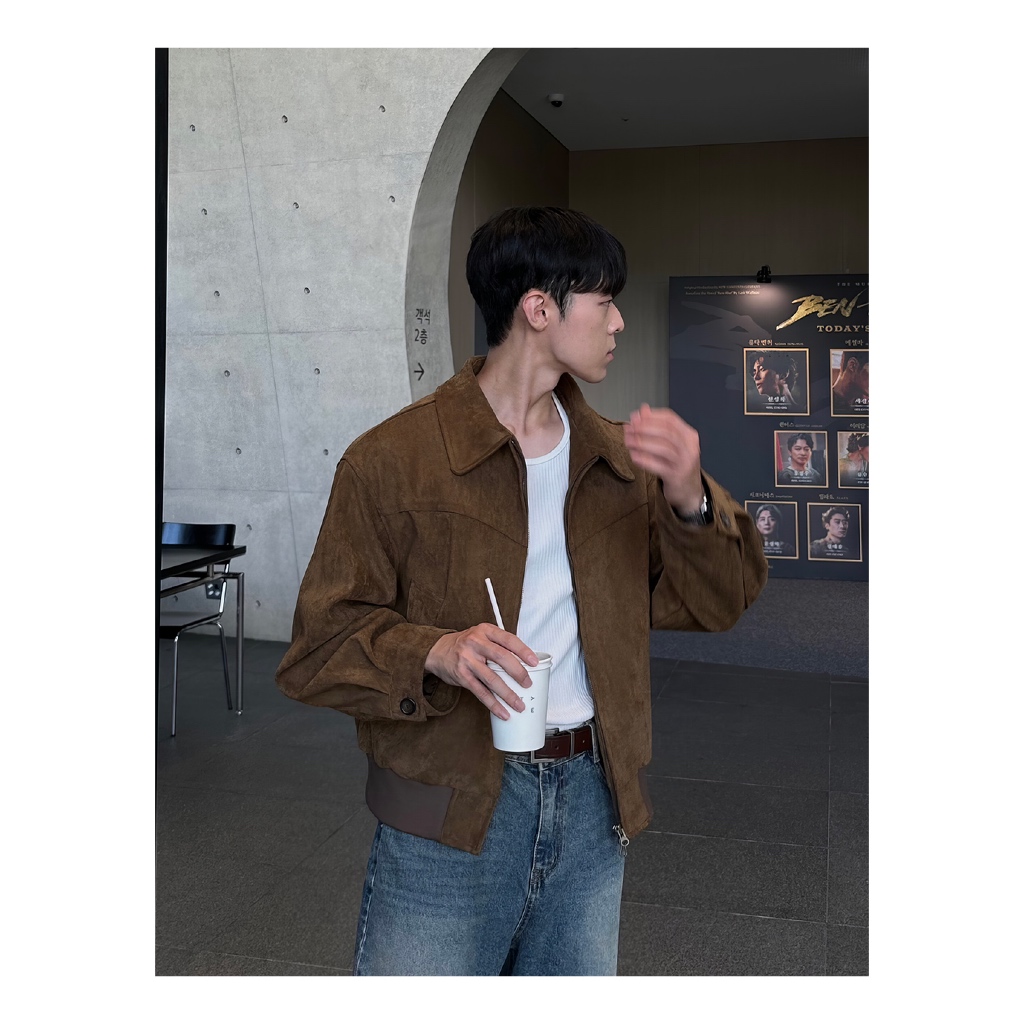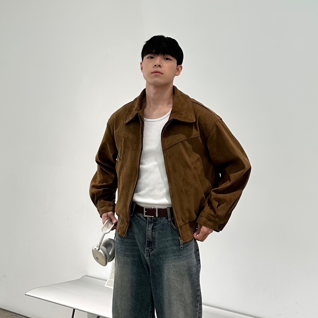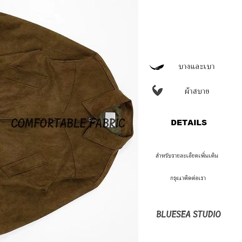 BS |coat เสื้อแจ็คเก็ตผู้ชายหนังกลับหลวมซิปออกแบบปกอเนกประสงค์เสื้อแจ็คเก็ตโมโนโครมเรียบง่าย