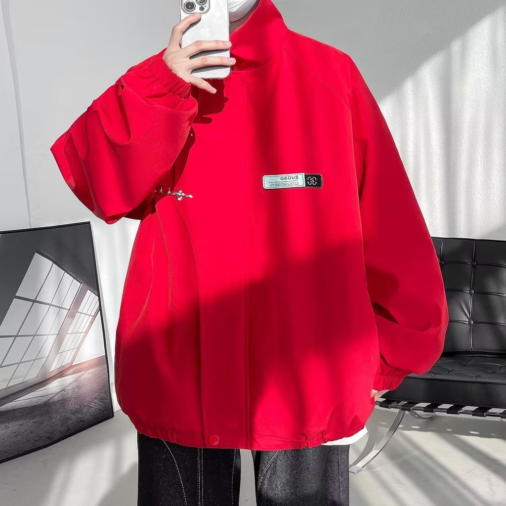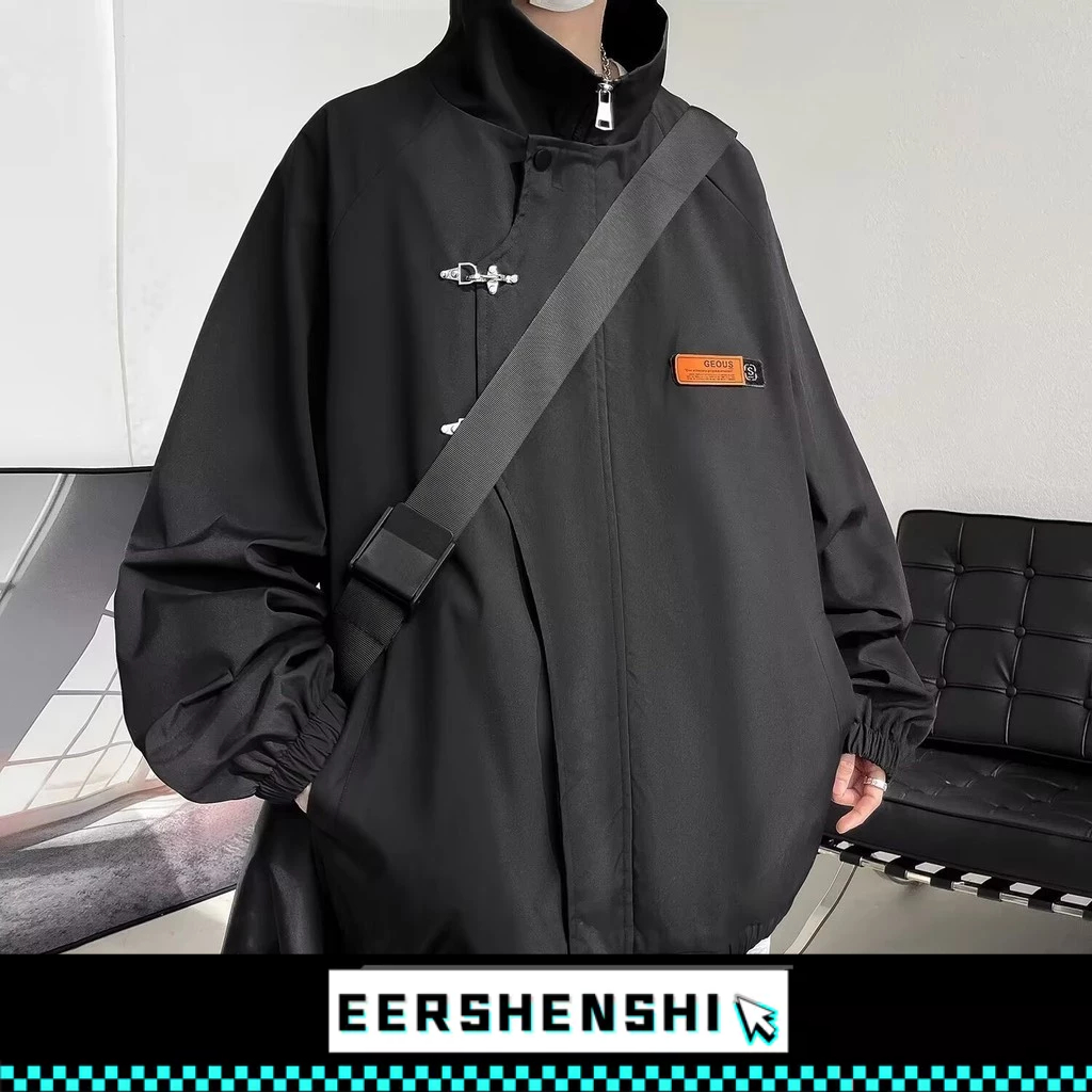 EERSHENSHI ชายเสื้อสีทึบเปลือกแจ็คเก็ตอเมริกัน สูง ถนน แฟชั่นแบรนด์หลวมกลางแจ้ง