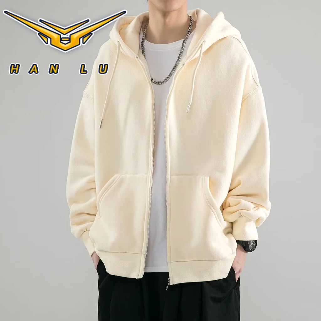 HANLU เสื้อกันหนาวผู้ชายแขนยาวคาร์ดิแกนแจ็คเก็ตสีทึบเกาหลีที่เรียบง่ายหลวมด้านบน