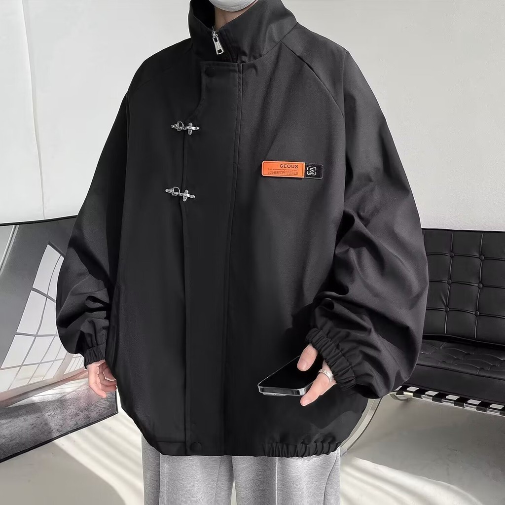 GKSSS เสื้อแจ็คเก็ตเบสบอลแบบบาง หลวม สีดำ แฟชั่นฤดูใบไม้ผลิและฤดูร้อน เสื้อแจ็คเก็ตนักเรียนสไตล์เกาหลี