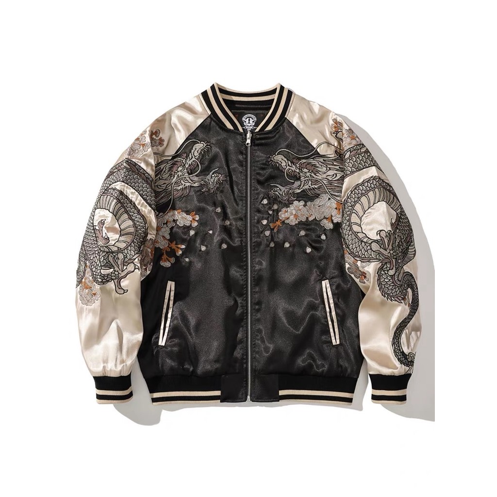 EERSHENSHI เสื้อแจ็คเก็ตผู้ชายอินเทรนด์มังกรปักเบสบอลแจ็คเก็ตแนวโน้มแห่งชาติสีคมชัดสไตล์จีน