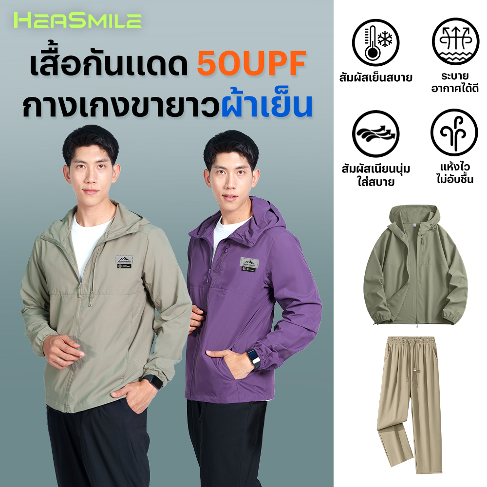 HeaSmile เซ็ท 2 ชิ้น เสื้อแจ็กเก็ต กันแดด 50 UPF + กางเกงขายาว ผ้าเย็น ใส่สบาย (S14M-LFPYBZK)