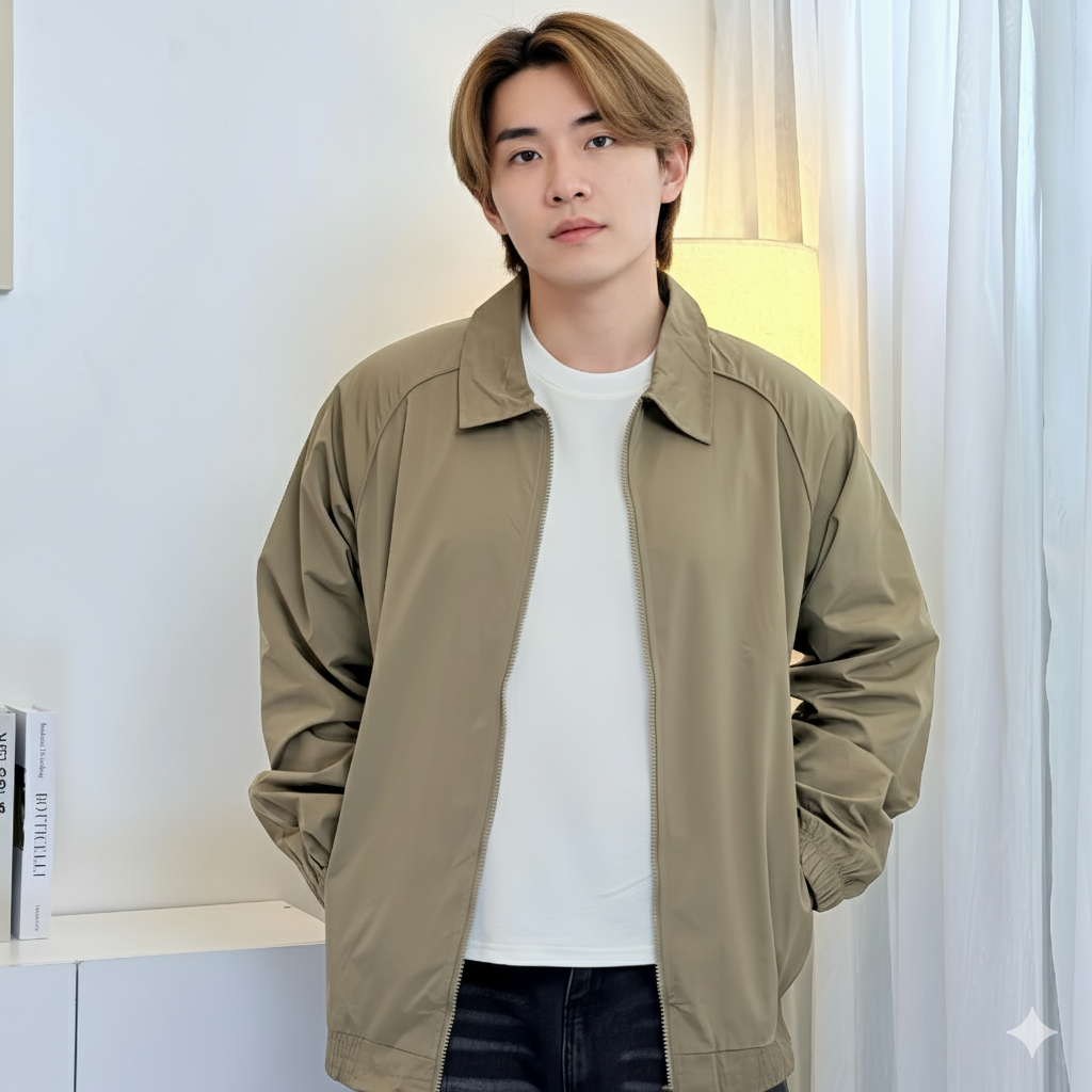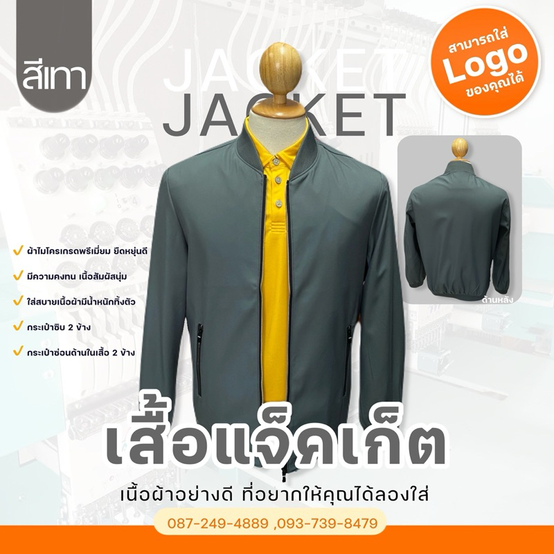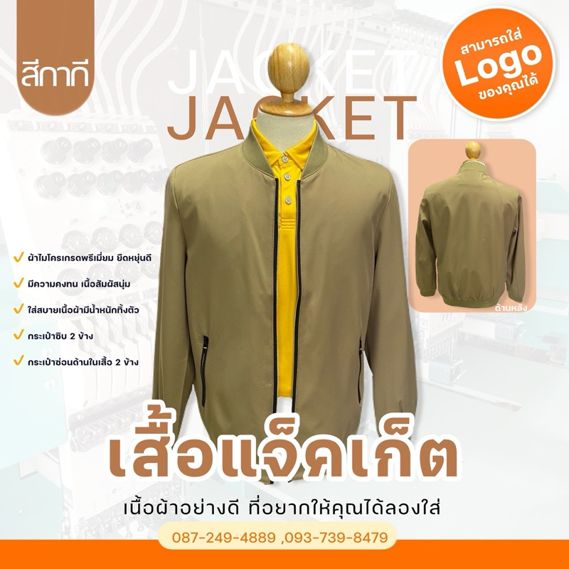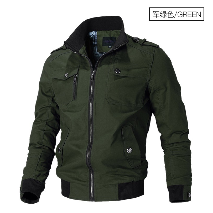 แจ็คเก็ตแขนยาวผู้ชาย สีเขียว อินเทรนด์ สวมใส่สบายและคล่องตัว ไซซ์พิเศษ+