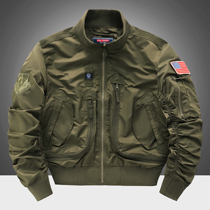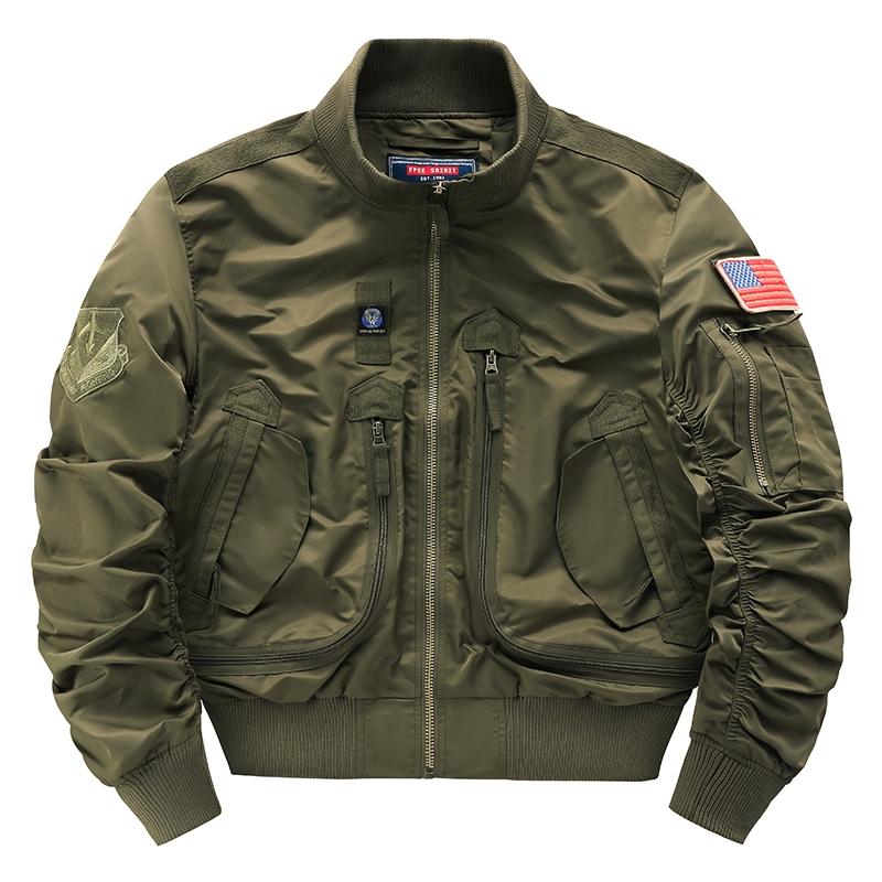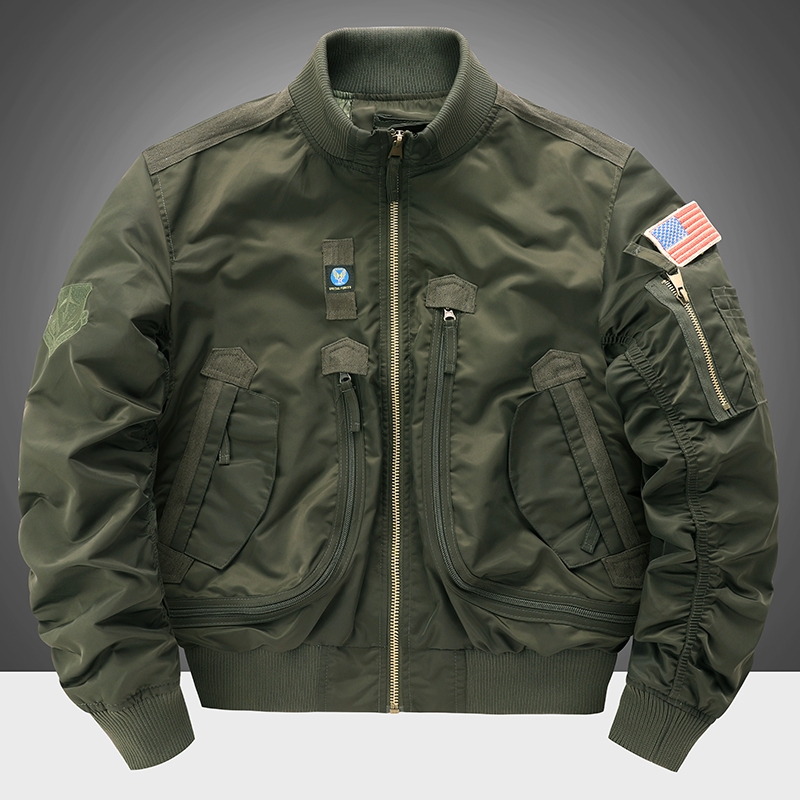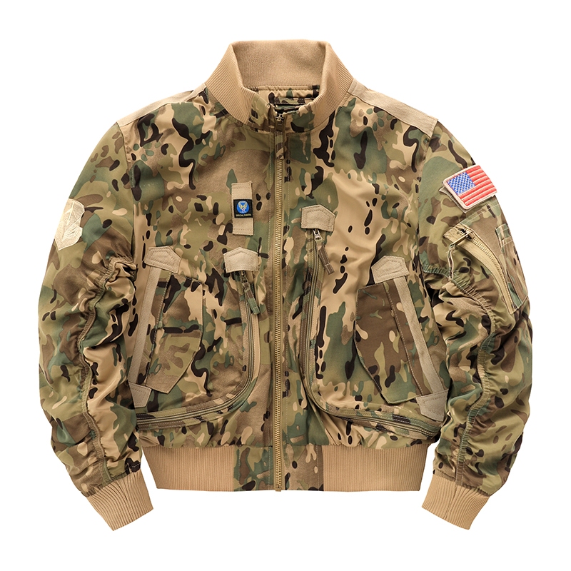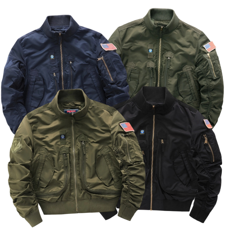 แจ็คเก็ตเที่ยวบินผู้ชายฟังก์ชั่นเครื่องมือกันน้ํา กันลม สบายๆกลางแจ้งหลายกระเป๋าแจ็คเก็ตเบสบอล