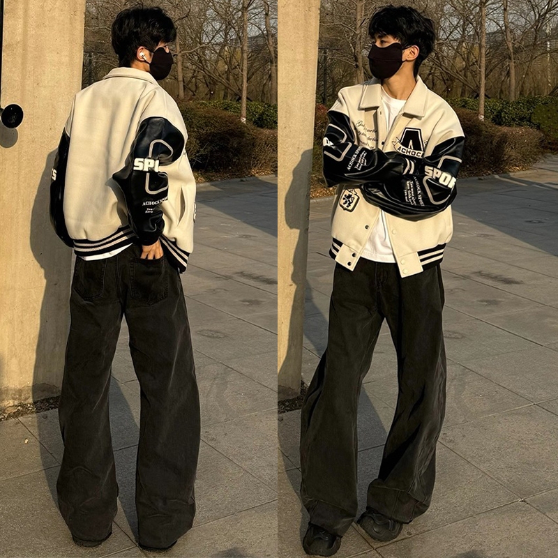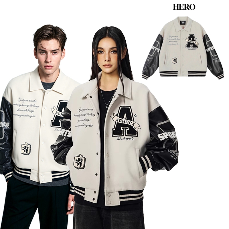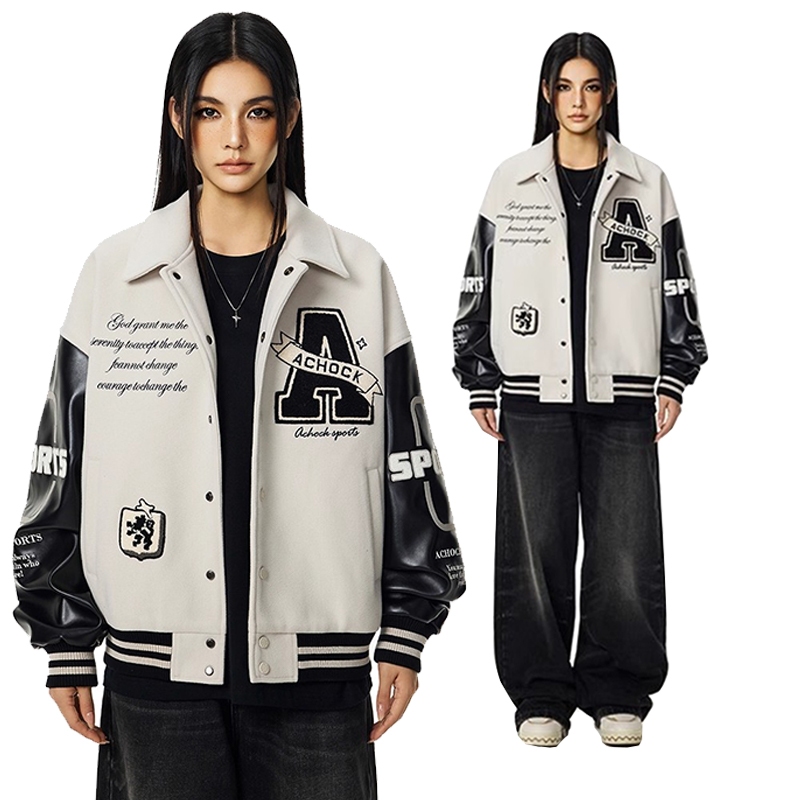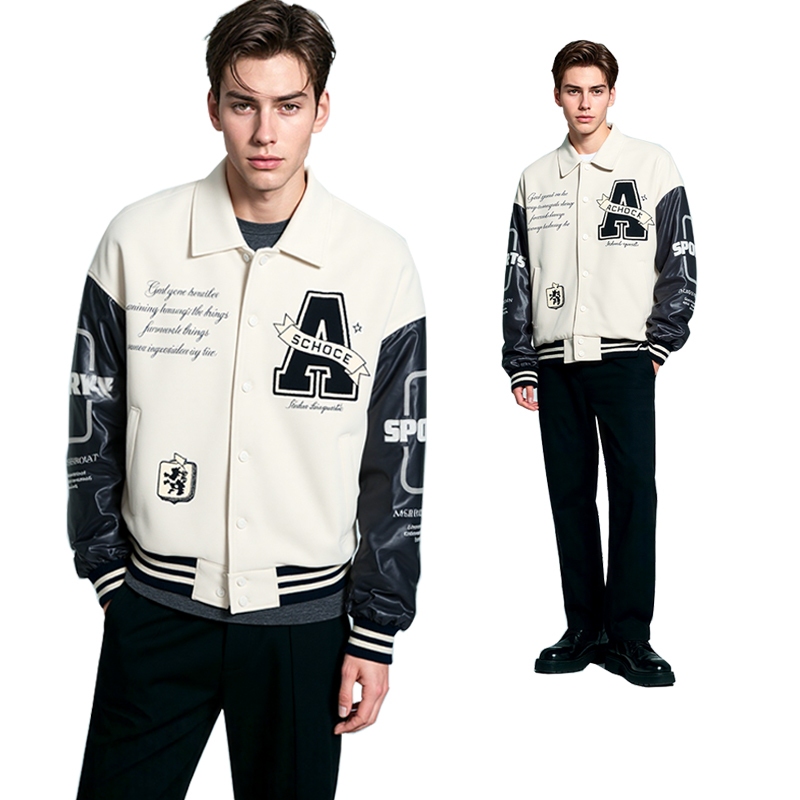 แจ็คเก็ตชุดเบสบอลสไตล์ย้อนยุคสำหรับผู้ชาย ออกแบบมาให้มีความคลายและมีปกพิมพ์ลาย