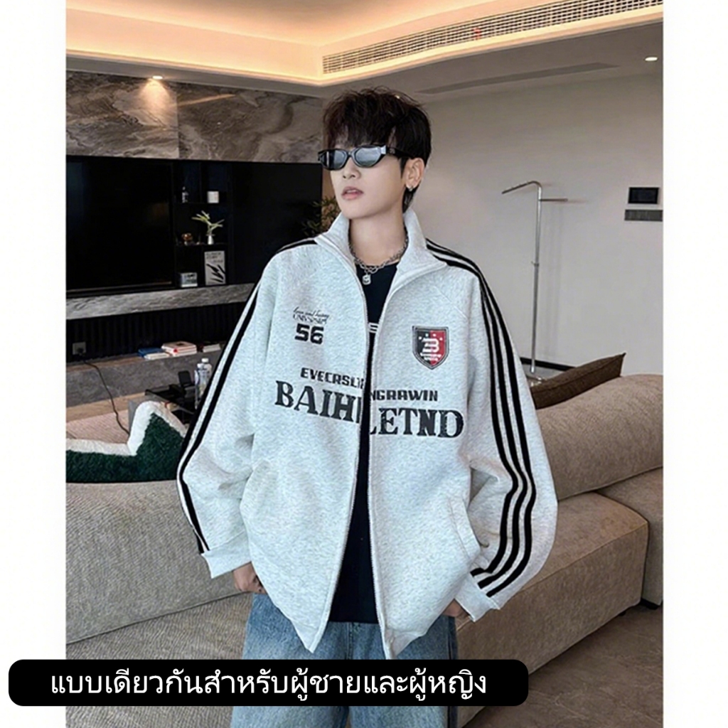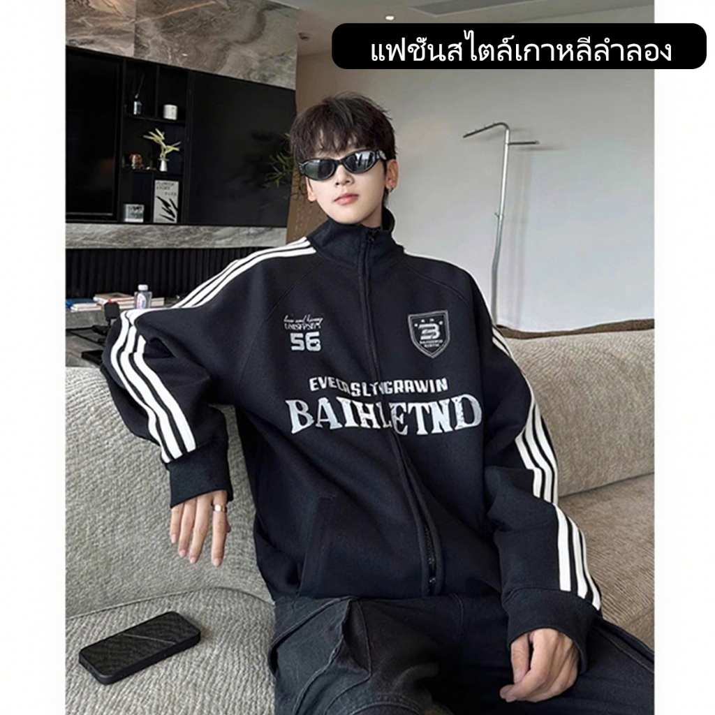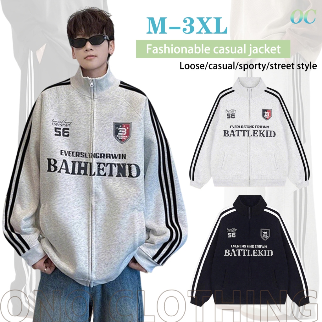 ✨ONO✨เสื้อแจ็คเก็ตลําลองแขนยาว เสื้อแจ็คเก็ตกีฬา ลายทางสีขาว เวอร์ชั่นเกาหลี แฟชั่น ไม่จํากัดเพศ ประเทศไทย พร้อมสต็อก M-3XL