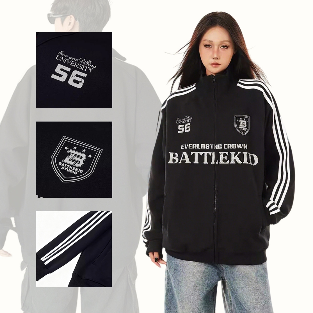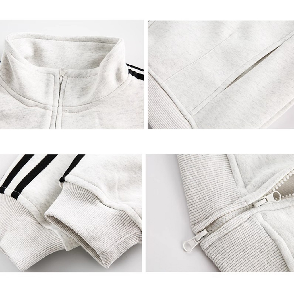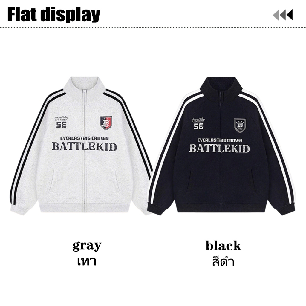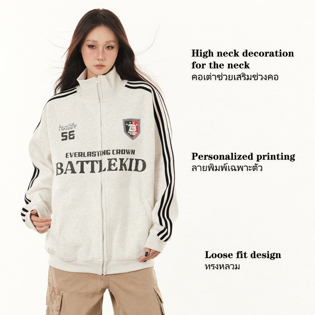 ✨ONO✨เสื้อแจ็คเก็ตลําลองแขนยาว เสื้อแจ็คเก็ตกีฬา ลายทางสีขาว เวอร์ชั่นเกาหลี แฟชั่น ไม่จํากัดเพศ ประเทศไทย พร้อมสต็อก M-3XL