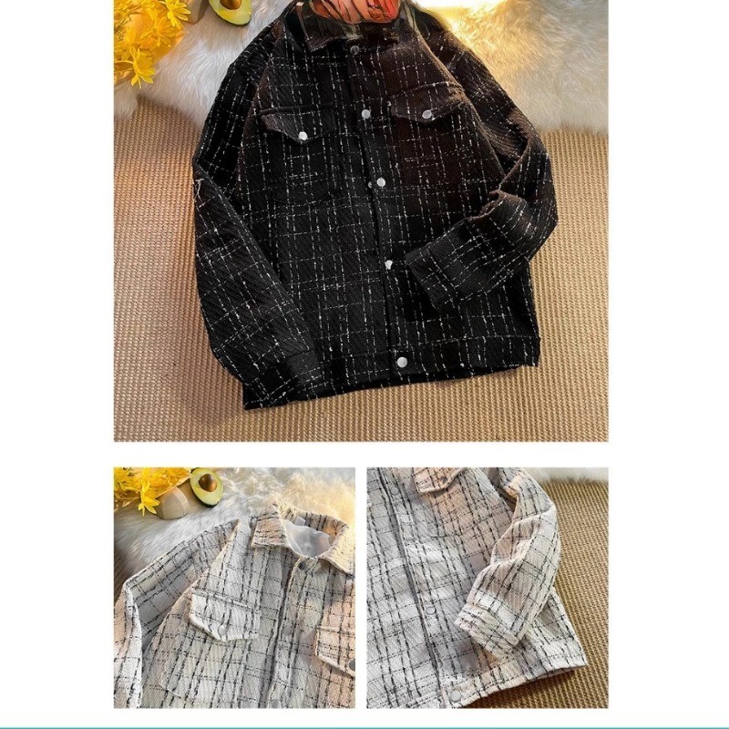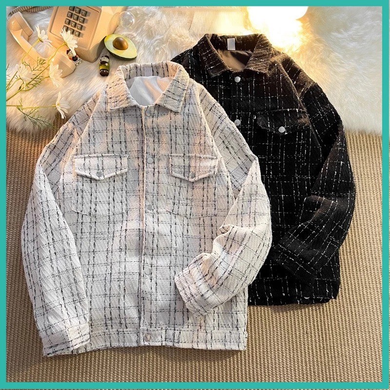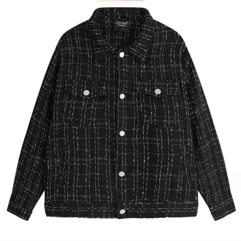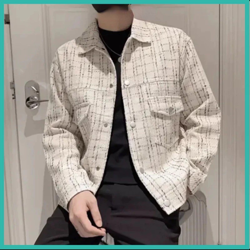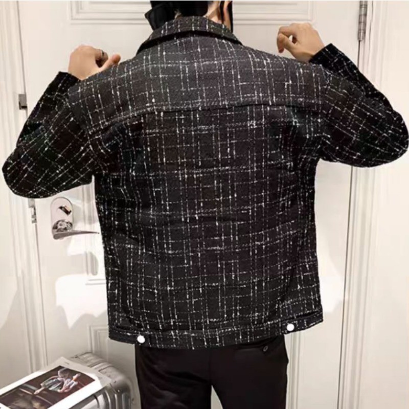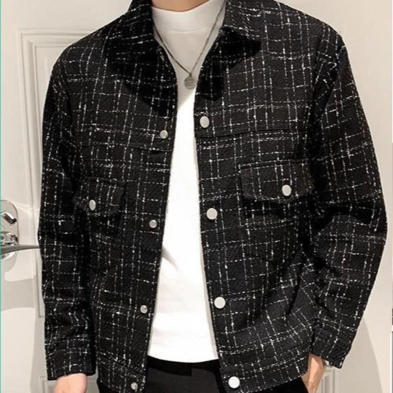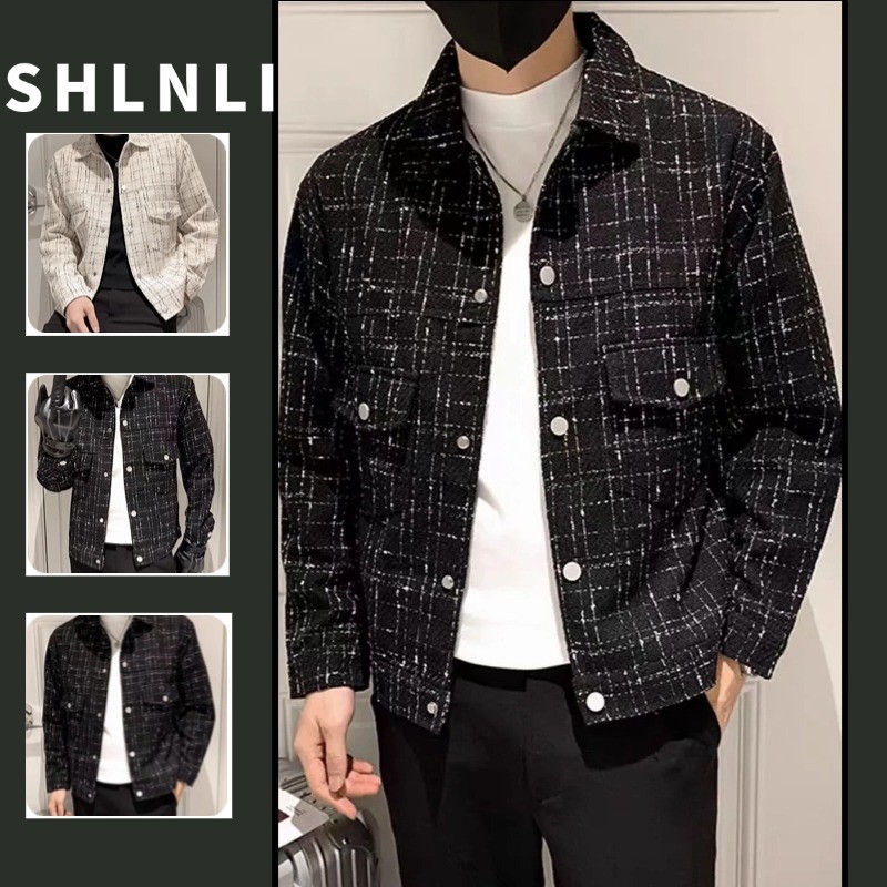 แจ็คเก็ตลายสก๊อตแขนยาวปกย้อนยุคอินเทรนด์ของผู้ชายฤดูใบไม้ผลิฤดูใบไม้ร่วง