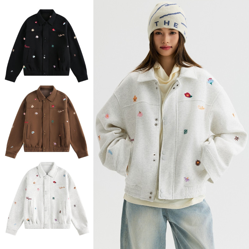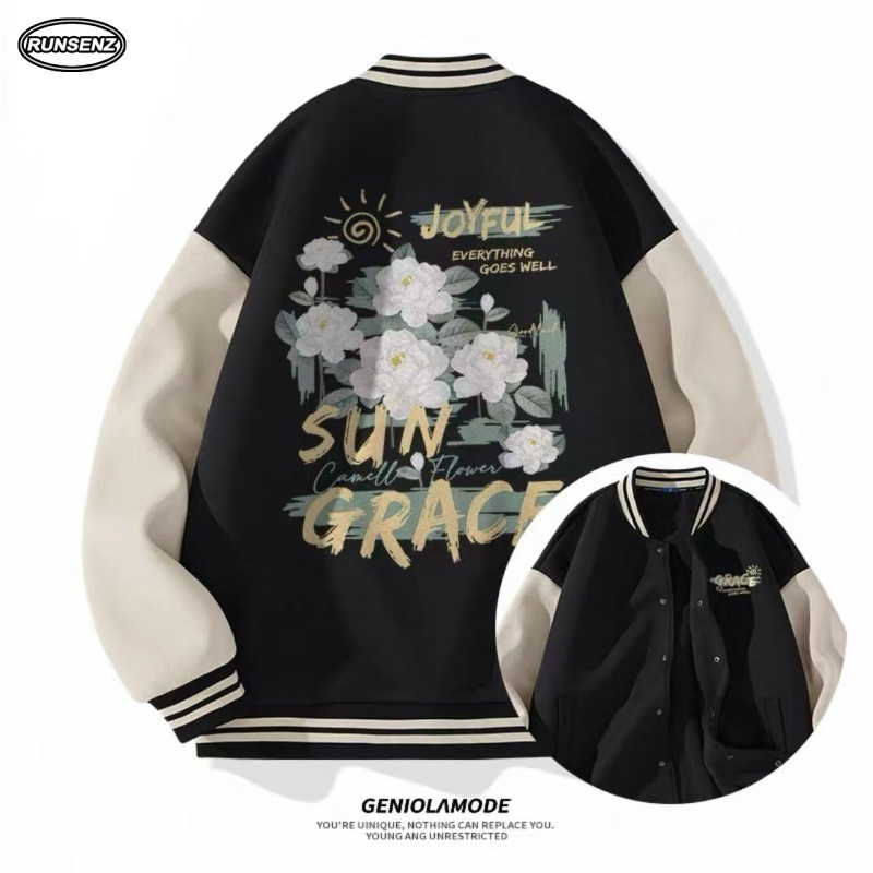 เสื้อแจ็คเก็ตเบสบอลรุ่นใหม่ดีไซน์ดอกไม้ สำหรับทุกเพศ สไตล์แฟชั่นและความสวยงาม