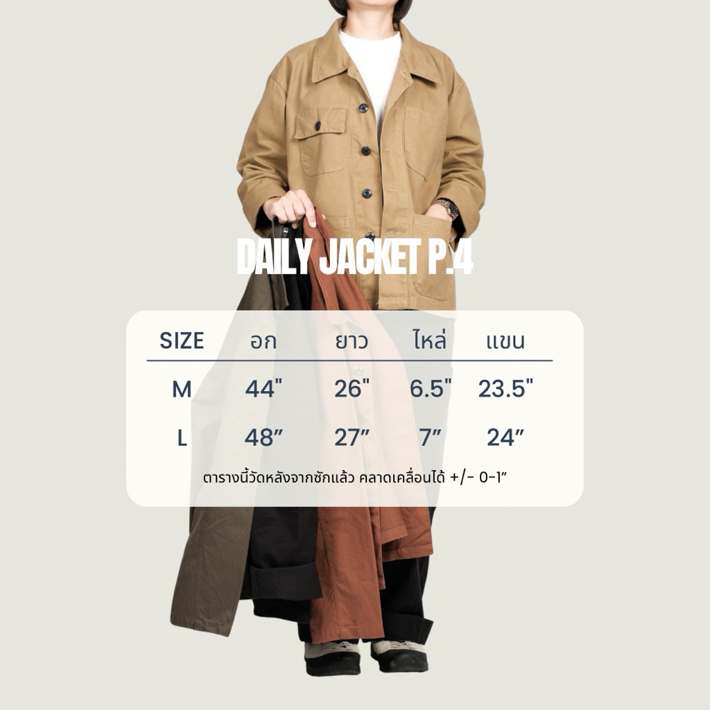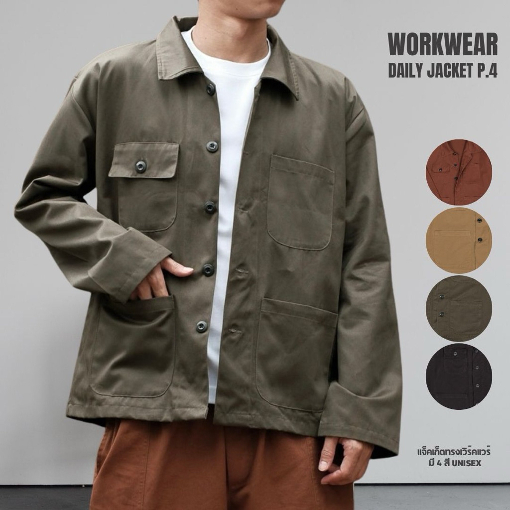 แจ็คเก็ตทรง workwear รุ่น Daily Jacket p.4 — 4 สี ใส่ได้ทุกวัน | Cotton 100% | Unisex | ใส่สบาย | มีไซซ์ M / L