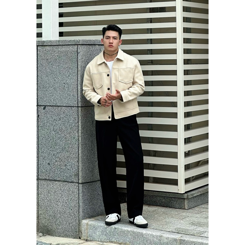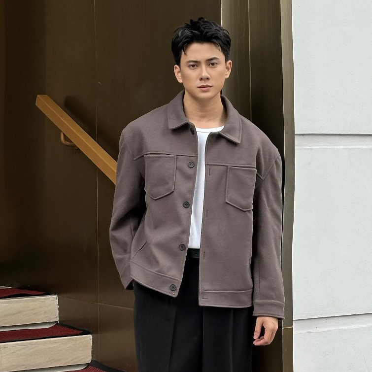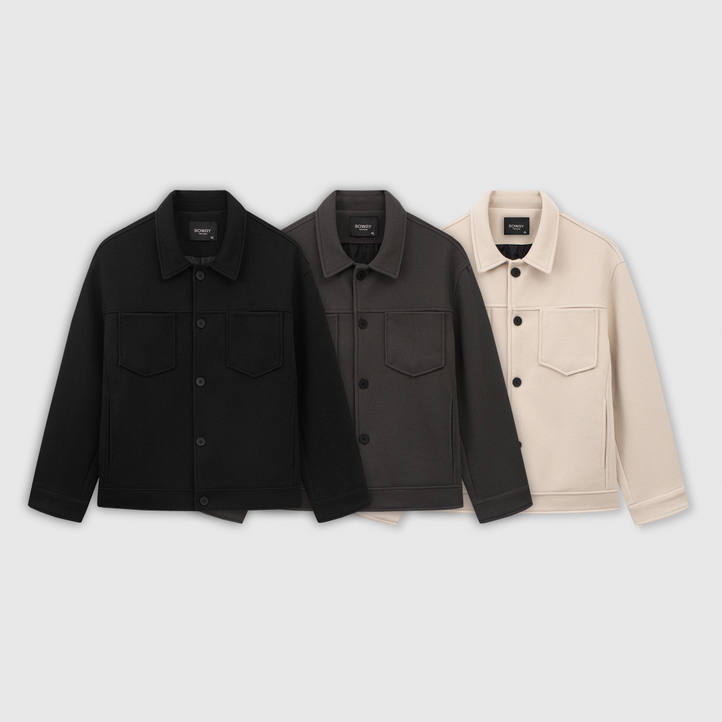 โรเวย์ เสื้อโค้ทกันหนาวผู้ชายวัสดุสักหลาดอัดคุณภาพสูง | ที่ปิดปุ่ม